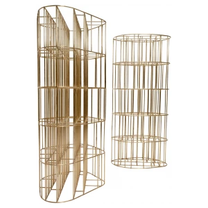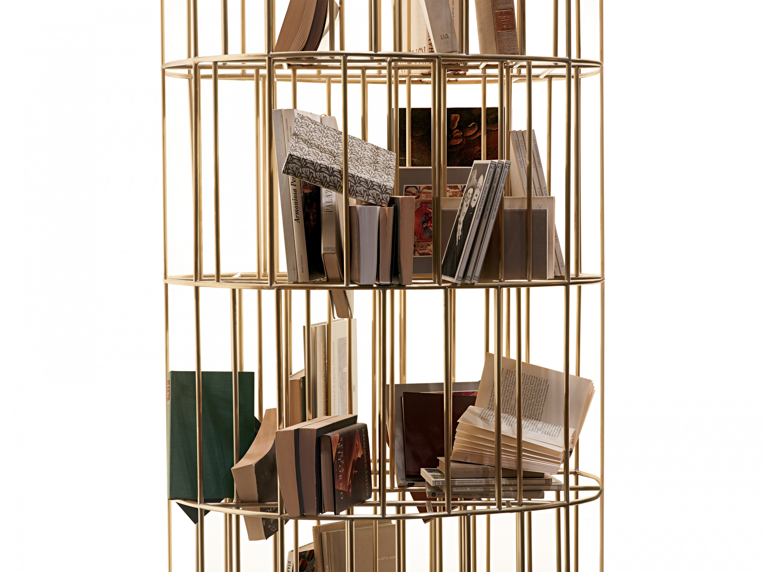 Stemming from the fruitful collaboration with designer Vincenzo De Cotiis, Golden Cage was created in 2007. With its solid curvilinear forms and brass finish, the bookcase is inspired by the glorious 1920s, recalling the mood of the early 20th century. A design icon that underlines the company’s consummate artisanship and production expertise. A contemporary classic that reinterprets the concept of the bookcase, exuding its charm in every setting. Available in two different sizes, it is made from 10 mm brass rods, welded and brushed completely by hand. Almost a “domestic sculpture”, to display at the centre of the room. At the same time it is also functional. In fact, as its name suggests, Golden Cage is designed to safeguard our most valuable possessions.