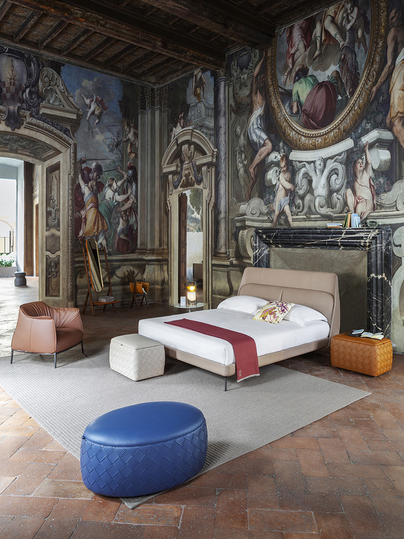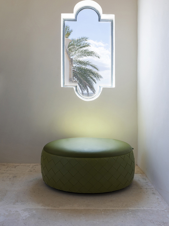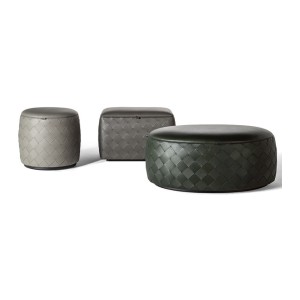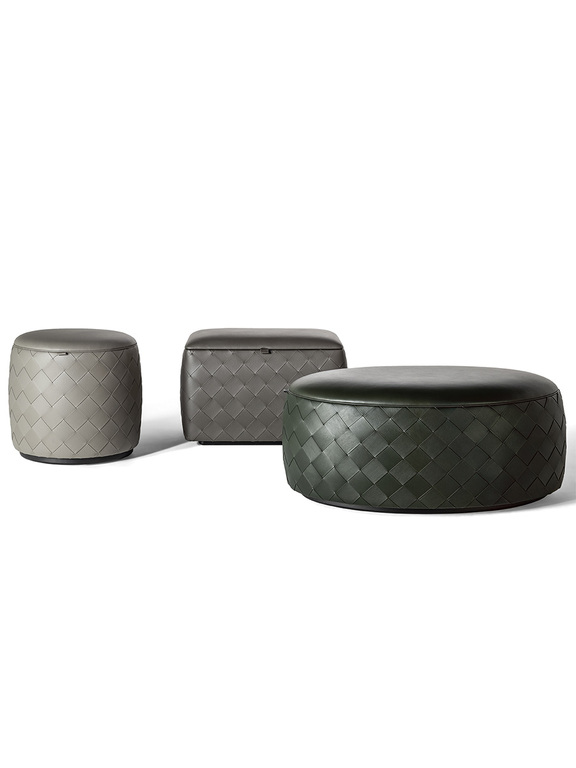 The models are characterized by a particular weaving technique, made with strips of Pelle Frau®, which decorates the perimeter structure of the poufs. The leather covering is available in Pelle Frau® SC ColorSphere® and Pelle Frau® Soul.
