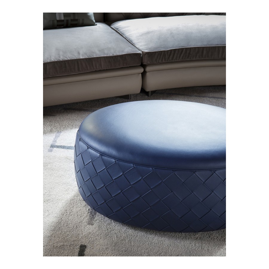 Only for the Pouf ø46 De Luxe and Pouf 90×64 De Luxe models, there is also the option of covering that combines two types of leather: the first one, Pelle Frau® Motif Knits, applied to the vertical surface and the second one, Pelle Frau® Velvety, to the seat of the pouf.