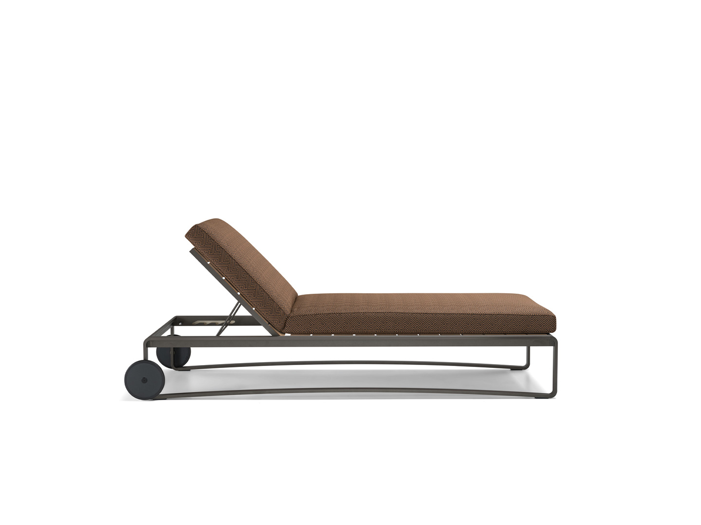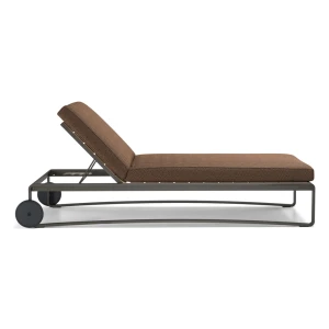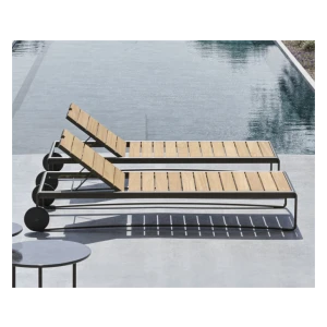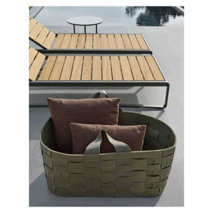 The backrest allows for different inclinations. It can be made entirely of solid teak slats woven in polypropylene rope.