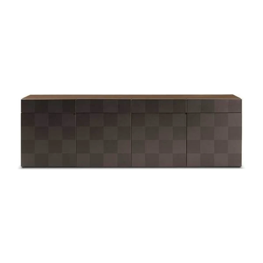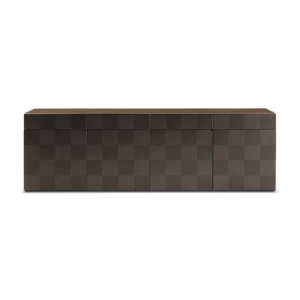 The shelf and structure woods come in Canaletto walnut. The entire H_O collection is upholstered with Tortora or Caffè saddle-leather. In the ‘square’ versions, the basic cover includes a 16×16 cm hand-produced “tone-on-tone” chessboard motif.