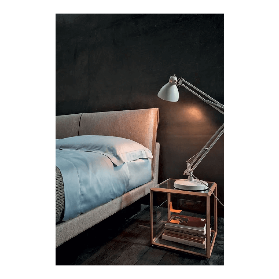 A simple but elegant bed characterized by its upholstery in fabric or leather, its materials and its tailoring, typical of the most refined “couturiers”.