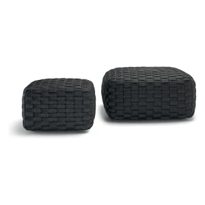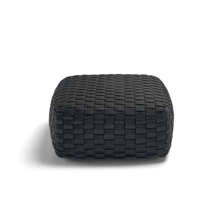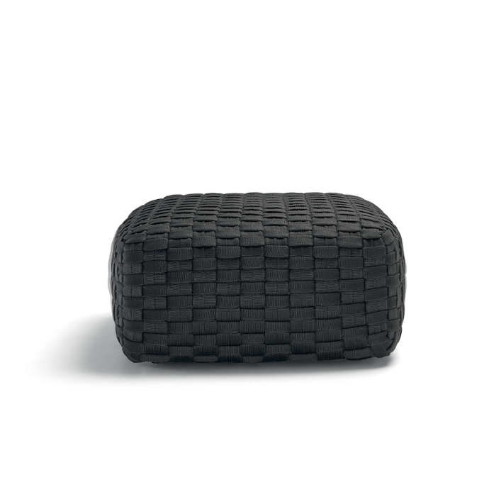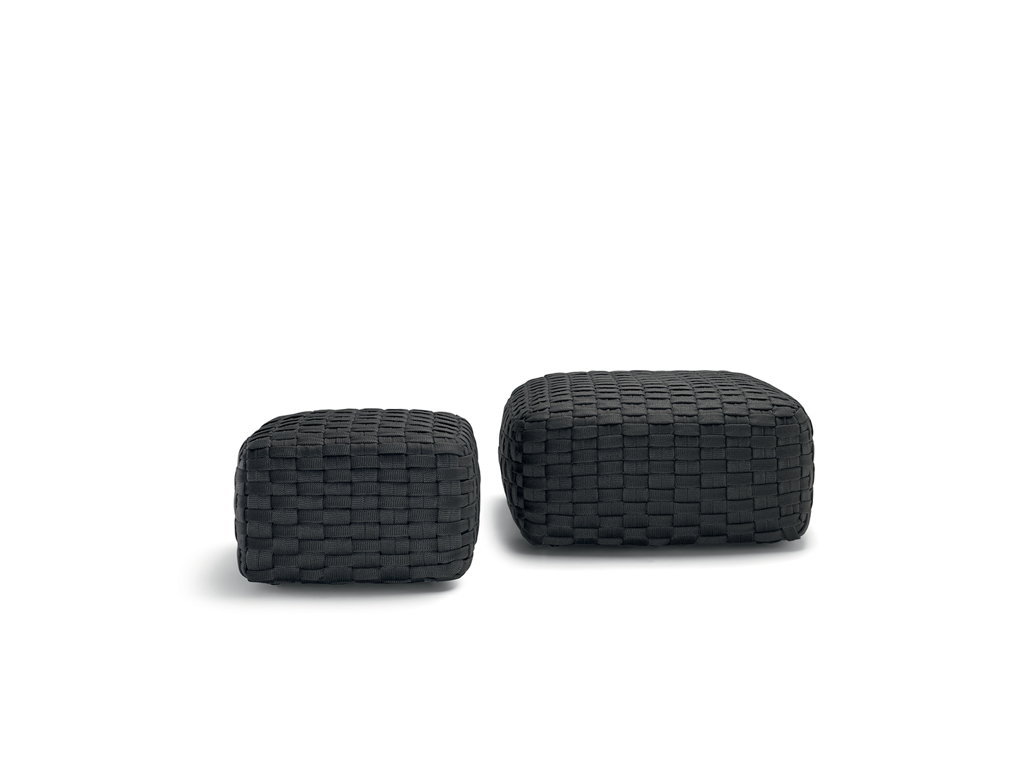 The interaction between the two collections is enhanced in a comfortable pouf, in two sizes, with a woven texture, to complete the accessories proposal of the Timeout Collection.