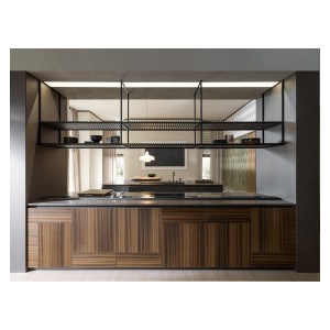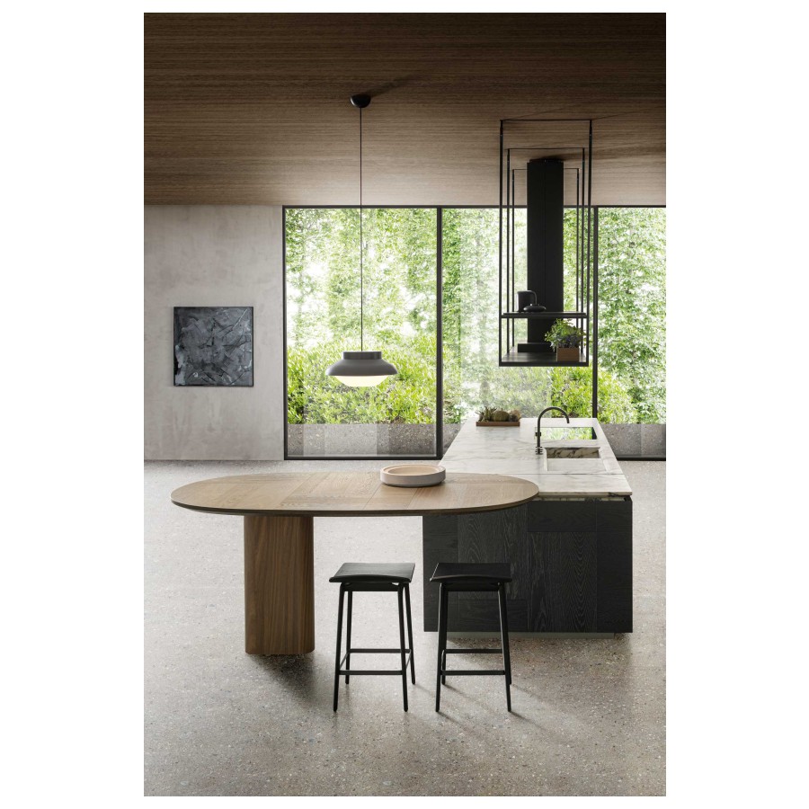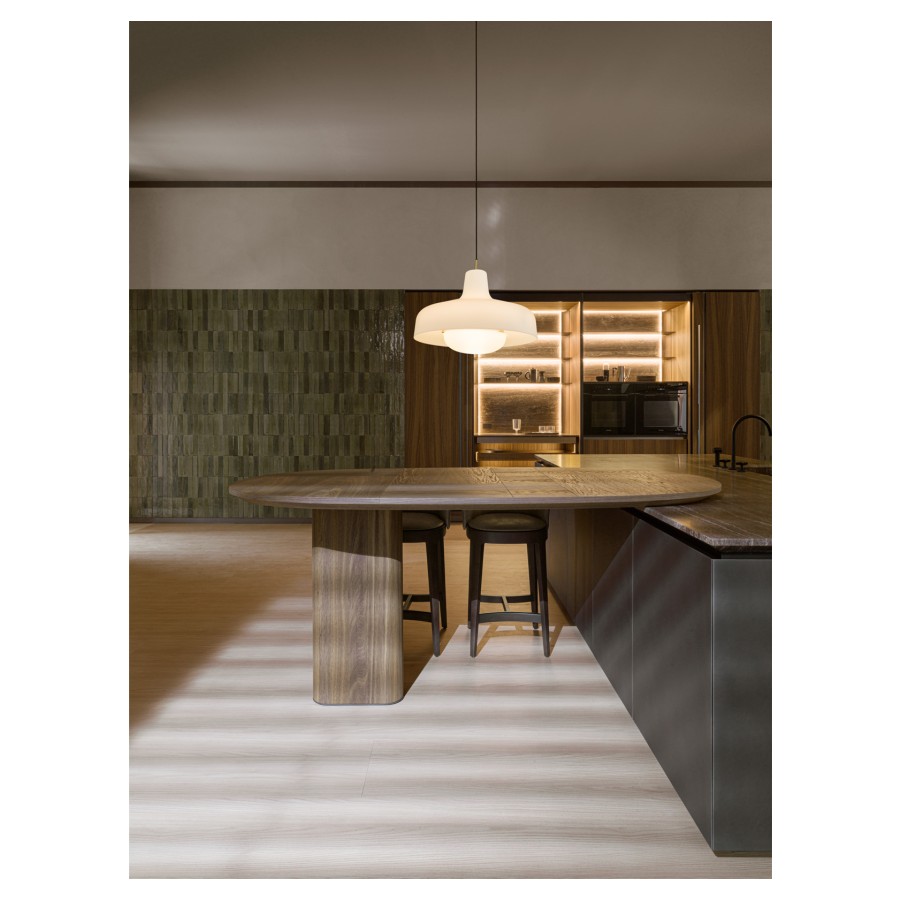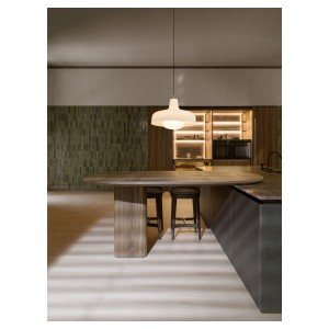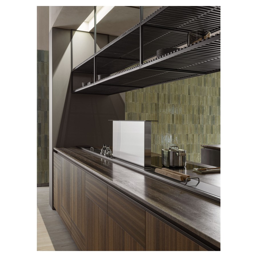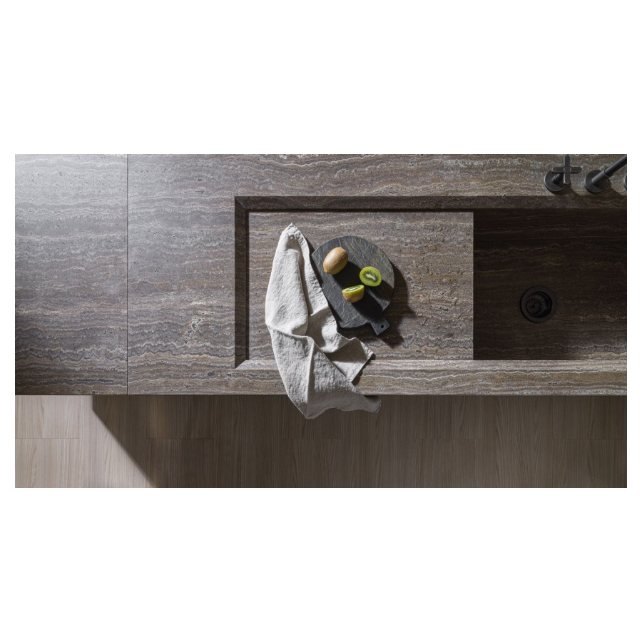 These monomaterial “shells”, subsequently applied to alveolar aluminum panels, guarantee that they are light, stable and mechanically resistant, thereby allowing a door to be built all in one with the side panels of the island. And the material nature of natural stone, with its unique and unrepeatable look, enters our homes with a spectacular application.