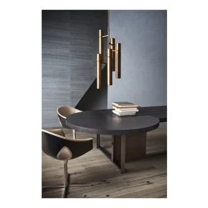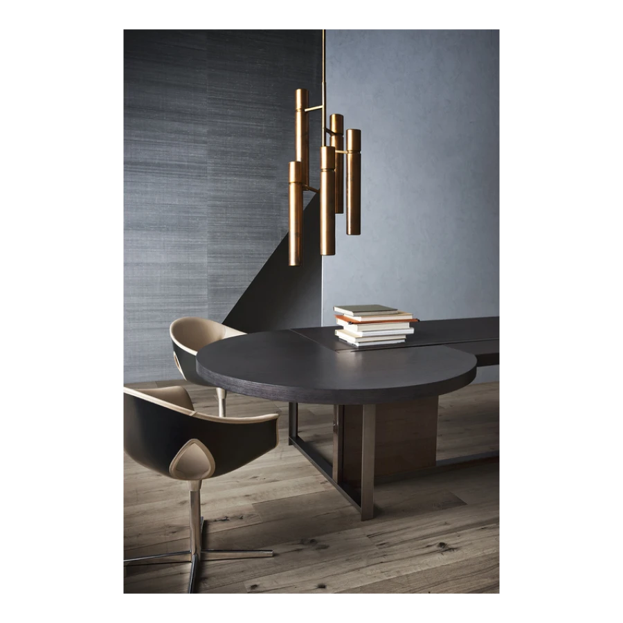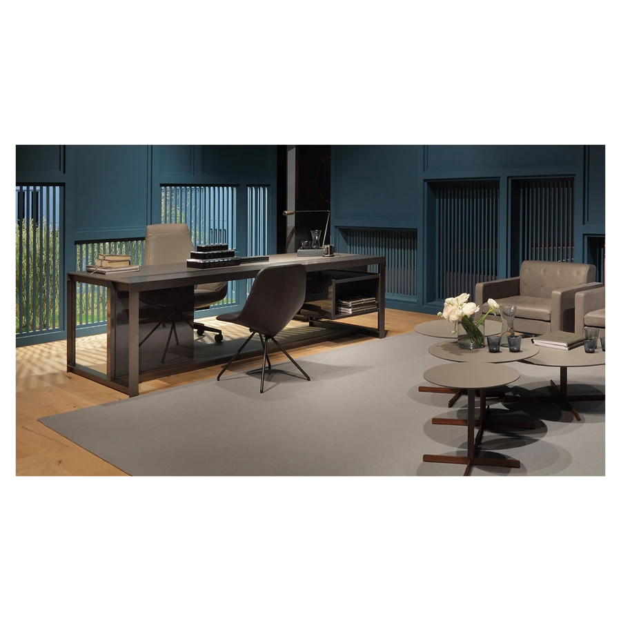 The Jobs Executive and Jobs Easy Desks also offer a version with ‘Meeting area’, a circular tabletop mounted on the supporting metal frame of the desk with Lead or Tobacco oak veneer and matt finish.