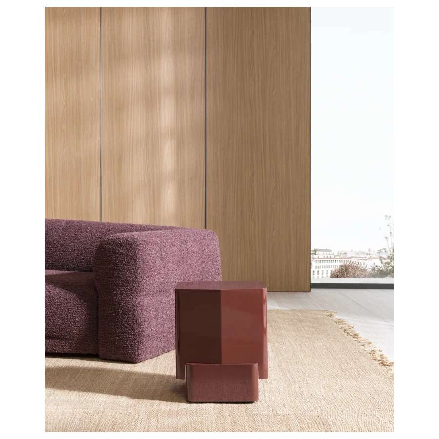 Finished entirely in high-gloss lacquer, Lèa captures and reflects light, enhancing its presence within the living space and serves as both a functional surface and an artistic focal point.