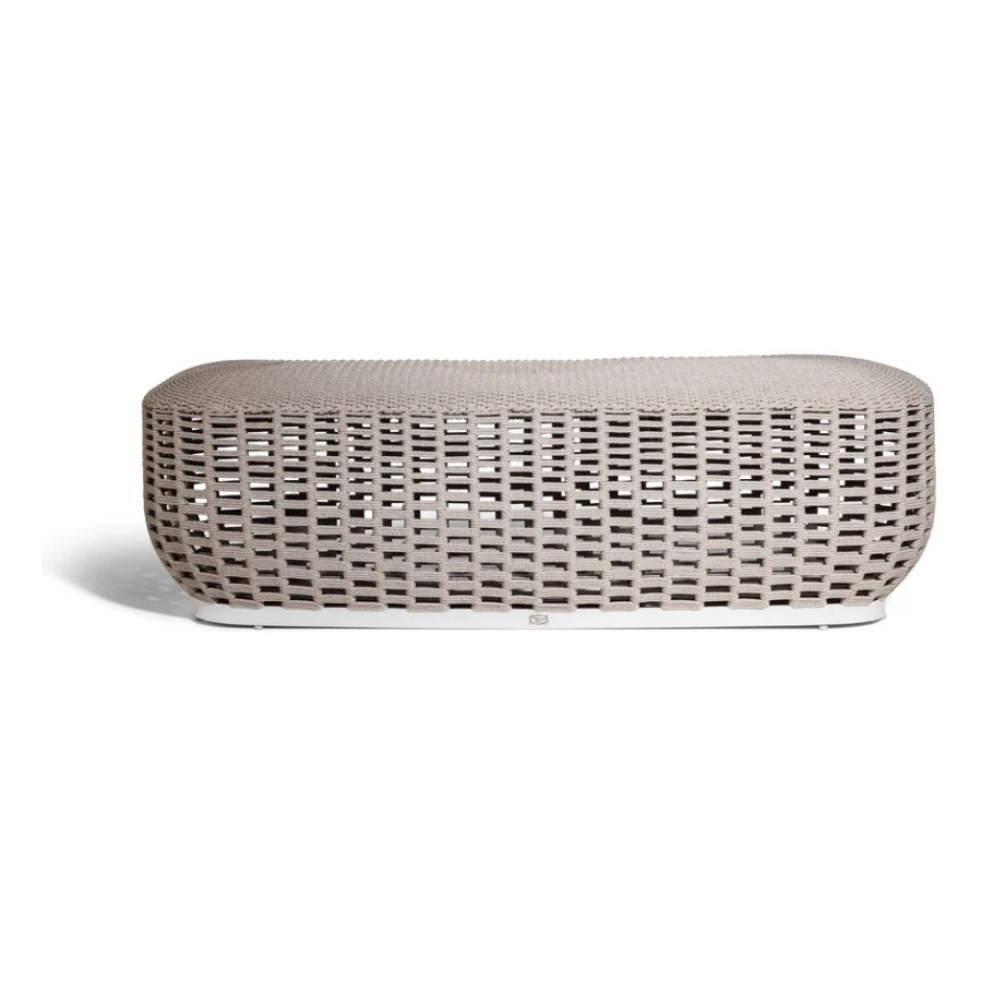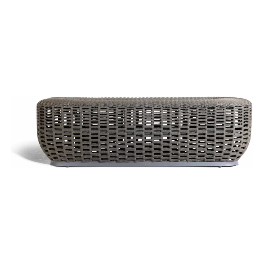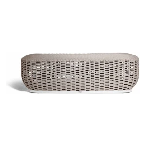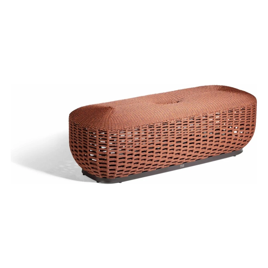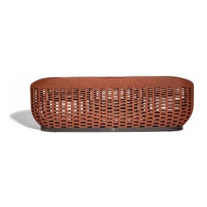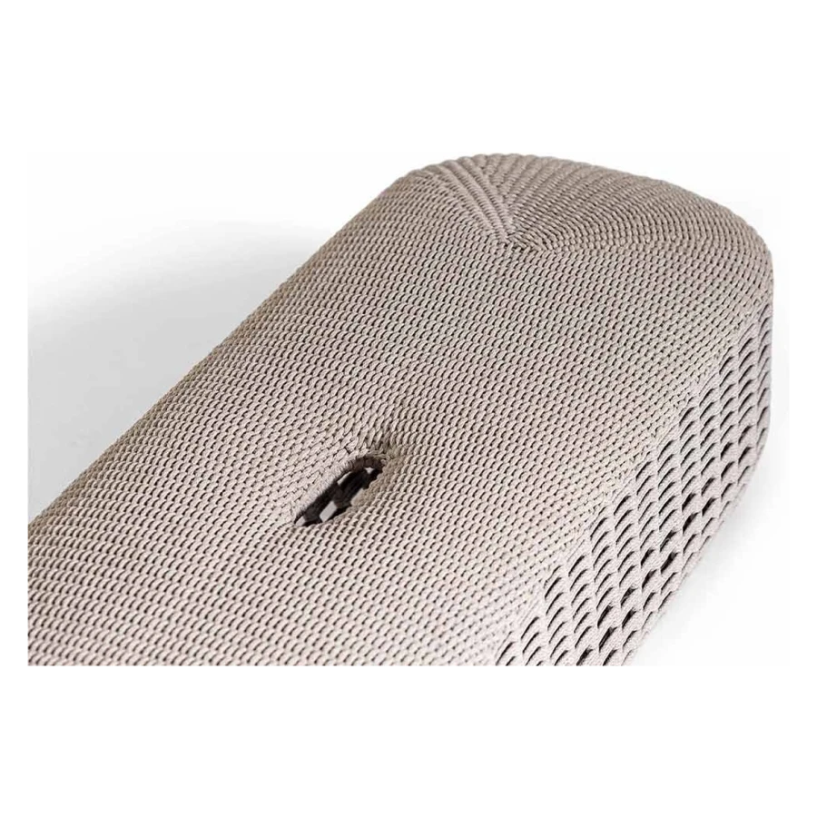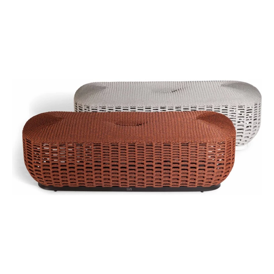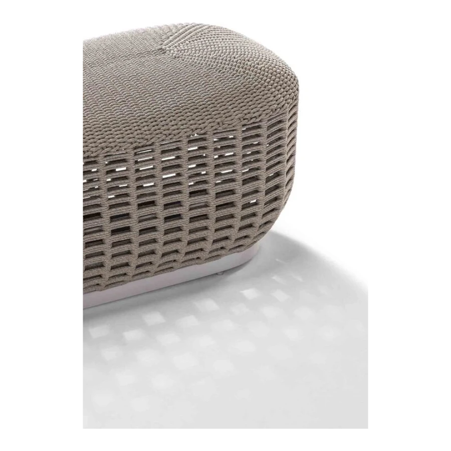The Leplì collection of poufs for outdoor spaces designed by Kensaku Oshiro was born out of its successful counterpart for indoors. It maintains the organic shapes that recall women’s fashion: a sinuous silhouette, tightened by a thin rope braid to emphasise the waist. In the outdoor version of the Leplì series, Oshiro adds the woven motif that characterises the Sparkler collection of outdoor lamps: polypropylene strings that wrap around the aluminium rod structure and create a unique effect of transparency and lightness. Rising upwards, the hand-made weaving becomes increasingly dense until it becomes solid on the seating surface, which hides the elastic belt springs within. The pouf/stool is available in 3 colour combinations that match the colour of the rope and the structure. Light, comfortable and easy to move, the Leplì Outdoor stool is a passe-partout that interacts with the entire range of Poltrona Frau Boundless Living Outdoor Collections to furnish the lounge area of gardens, terraces, patios, poolside and ship decks with a distinctive identity.