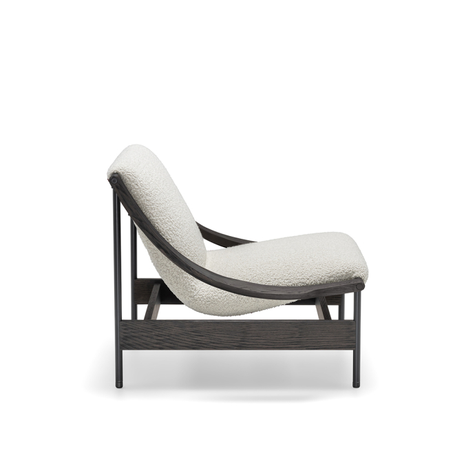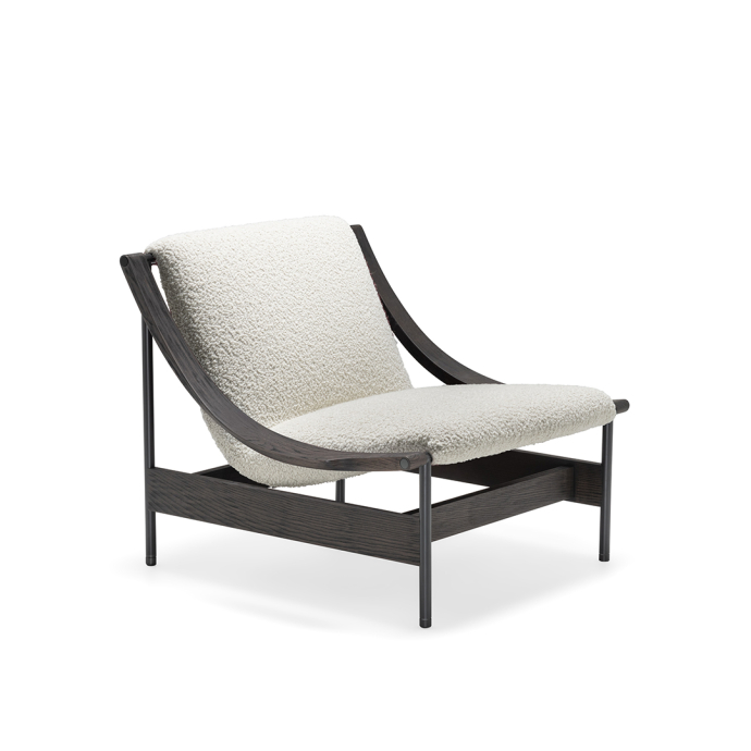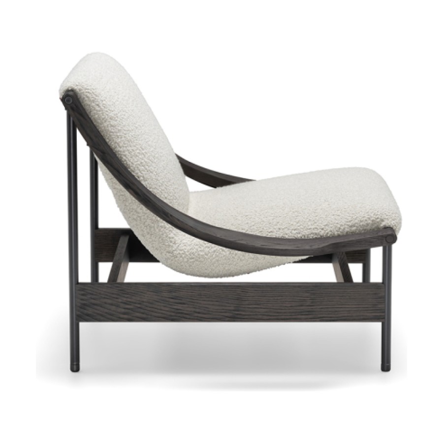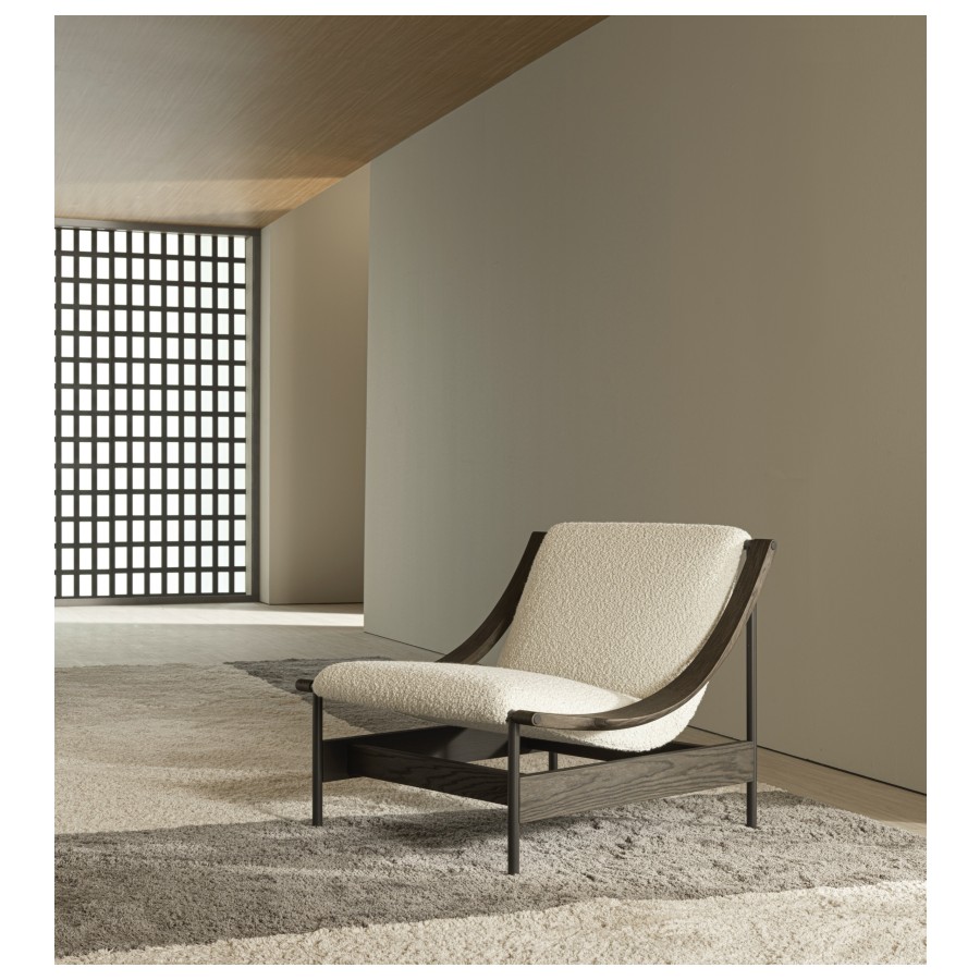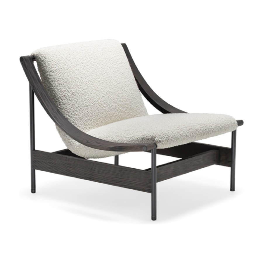 At the heart of its design is a gracefully suspended seat, supported by a slender yet robust metal frame. The defining detail—the sinuous, scythe-shaped oak armrests—bears the unmistakable signature of GamFratesi. This fusion of Scandinavian purity and Italian innovation results in an armchair that is both visually striking and exceptionally comfortable.