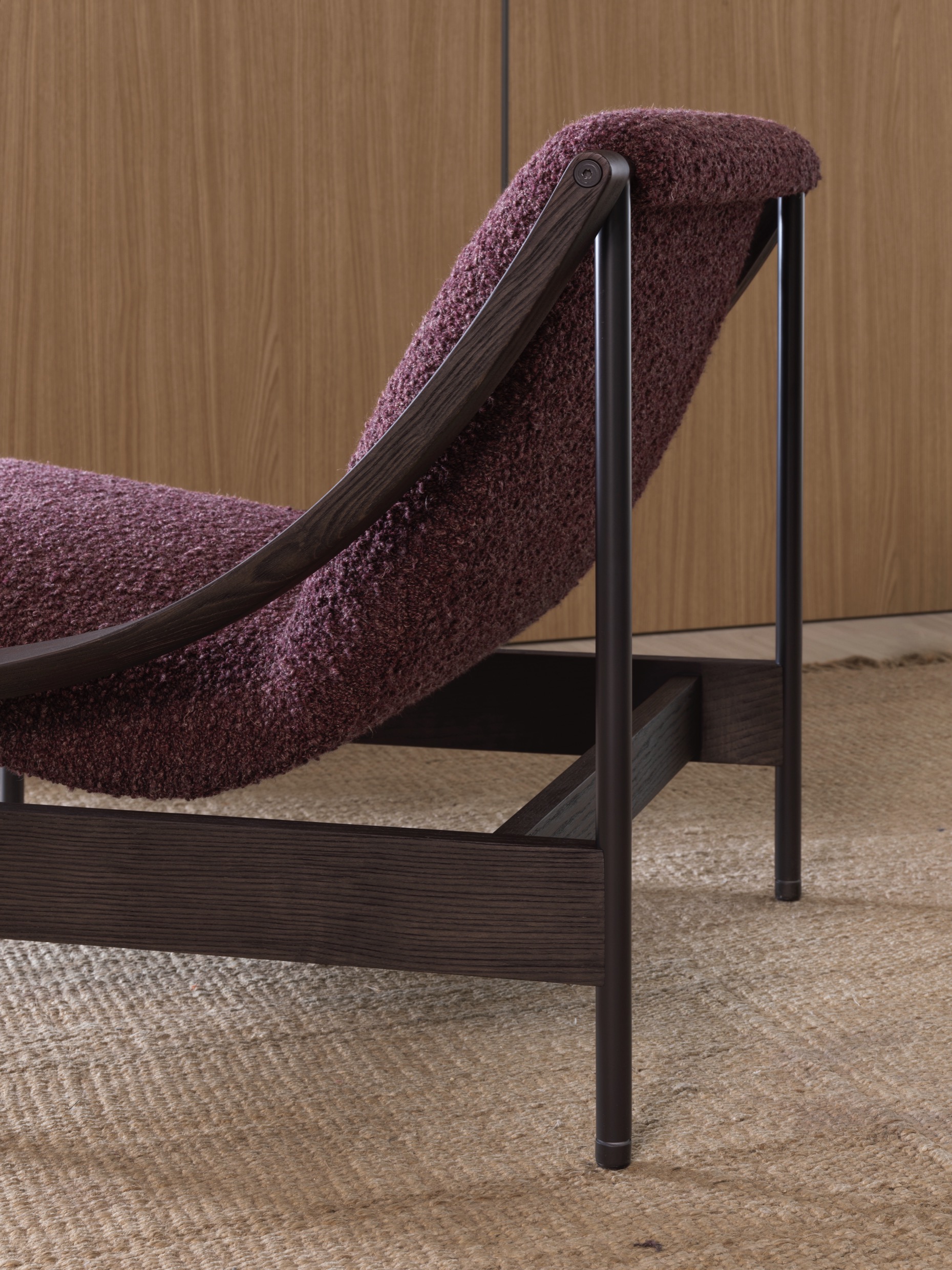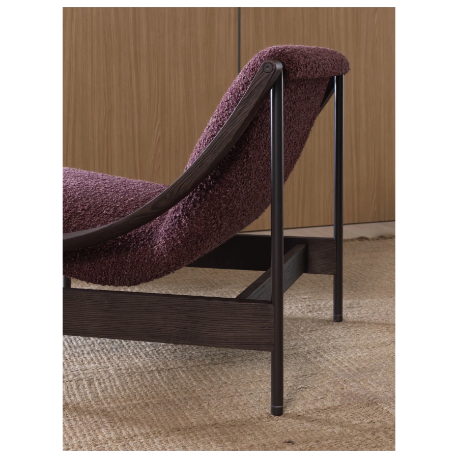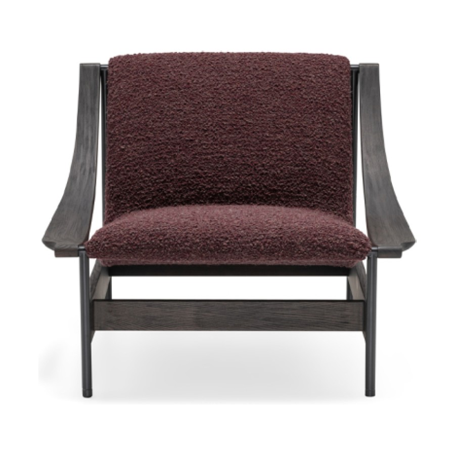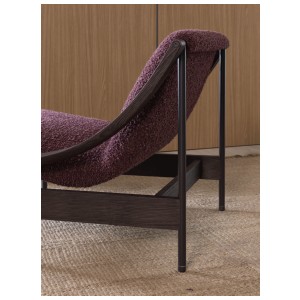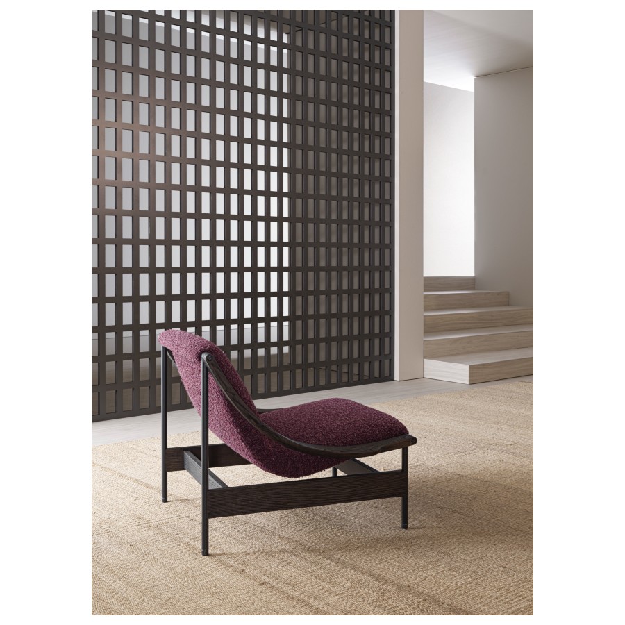 At the heart of its design is a gracefully suspended seat, supported by a slender yet robust metal frame. The defining detail—the sinuous, scythe-shaped oak armrests—bears the unmistakable signature of GamFratesi. This fusion of Scandinavian purity and Italian innovation results in an armchair that is both visually striking and exceptionally comfortable.