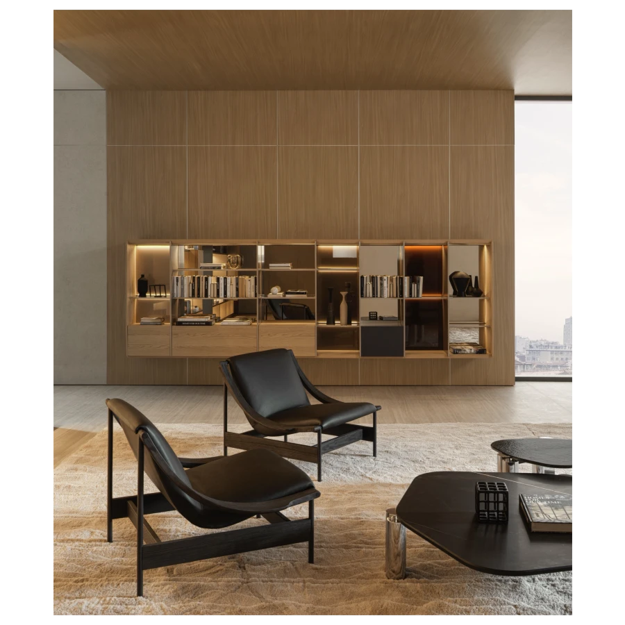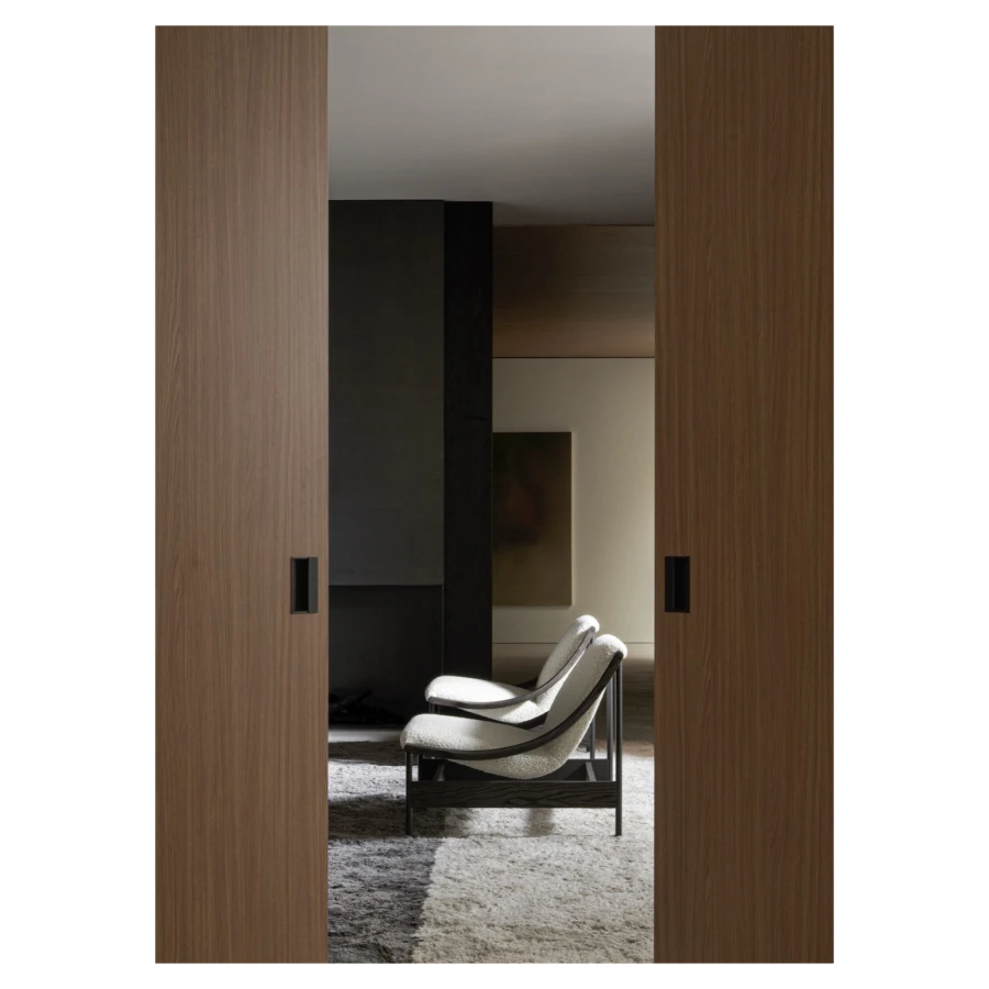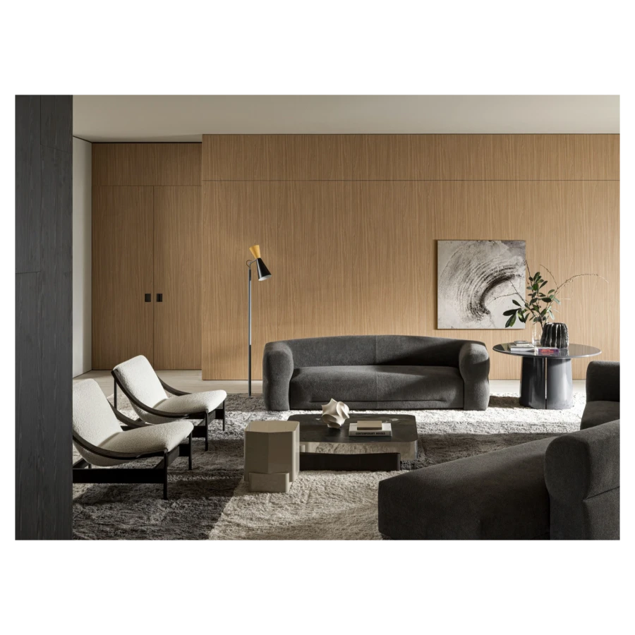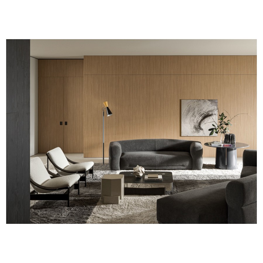 The richness of its materiality is further elevated by a selection of fine upholstery, available in soft bouclé fabric or supple leather, enhancing the sensory experience of every touch. Versatile in nature, Lia adapts effortlessly to both private and hospitality settings, where its elegance and meticulous craftsmanship create an inviting presence.