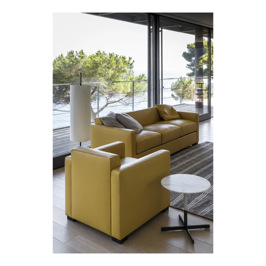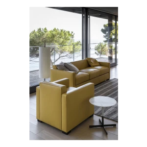 Peter Marino designs a soft, deep seat for Linea A: a two- or three-seater sofa and an armchair with deliberately reduced dimensions but no less comfortable for it. The compact design makes it a very versatile piece of furniture while the wide seat is very welcoming and warm.