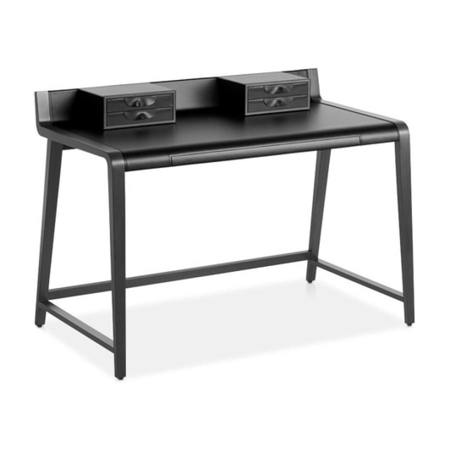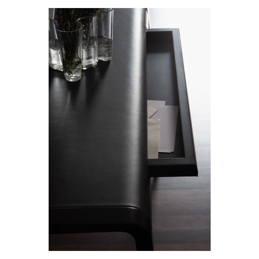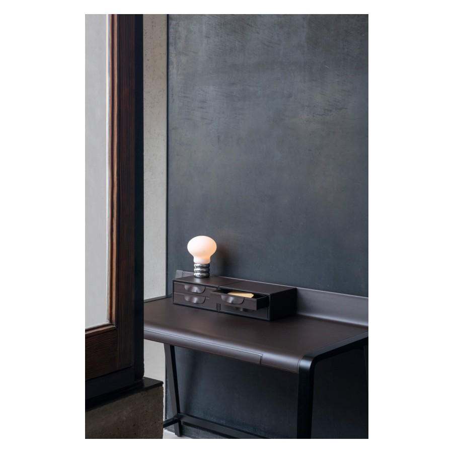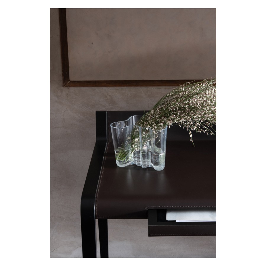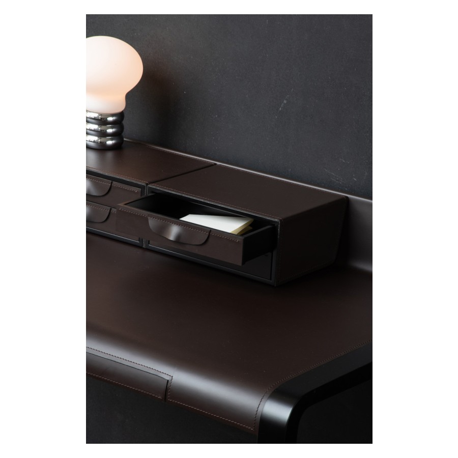 Linus is a writing desk with solid beech wood structure with top and drawers covered in hide leather. To expand its functionality, a storage compartment hidden discreetly under the top that does not affect its design.