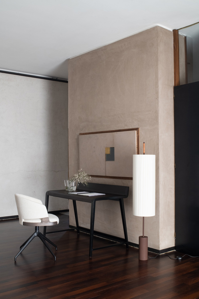 The Linus writing desk presents airy and agile lines in which the woodwork is combined with impeccable details.