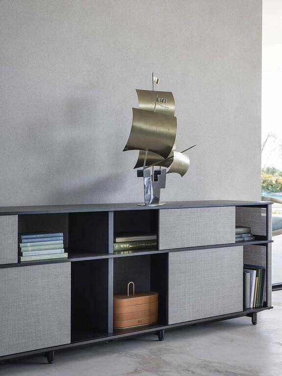 In Lloyd Tex, the most advanced technology comes together with traditional materials such as wood, in a delicate balance between different spirits of material. And the interplay of solids and voids becomes even more evident, allowing a glimpse of the content of the freestanding bookcase, without completely revealing it.