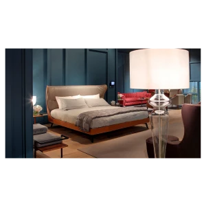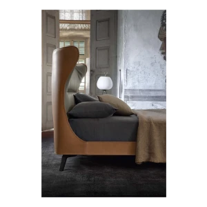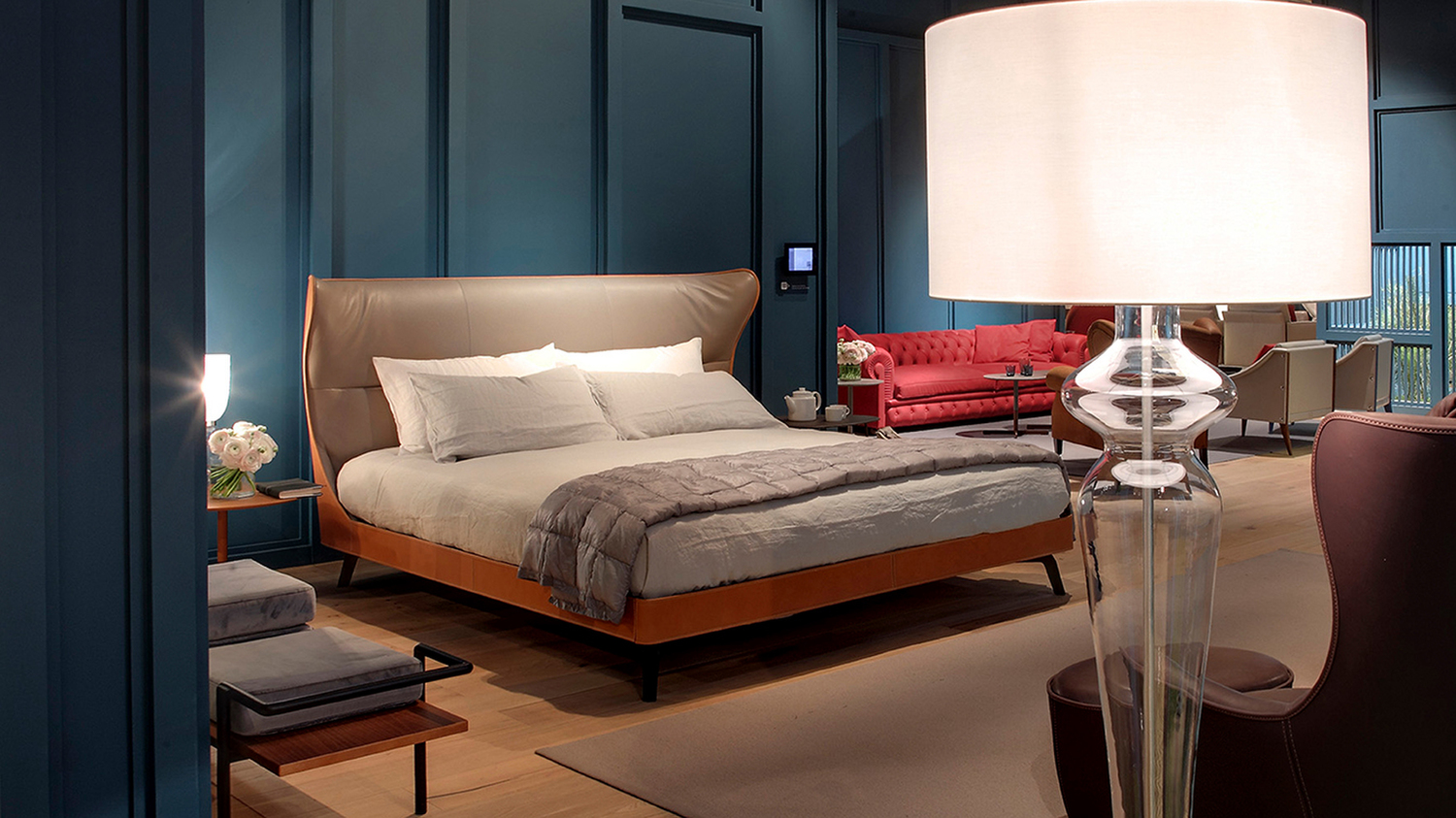 Designed by Roberto Lazzeroni, who calibrates its generous dimensions with a soft and rounded design, the Mamy Blue Bed is akin to a sculpture, expertly modelled and processed by the Poltrona Frau craftsmen. Mamy Blue Bed is designed to grab the spotlight, the curves of its striking headboard, which envelop the bed surface, inspired by the armchair from which it takes its name.