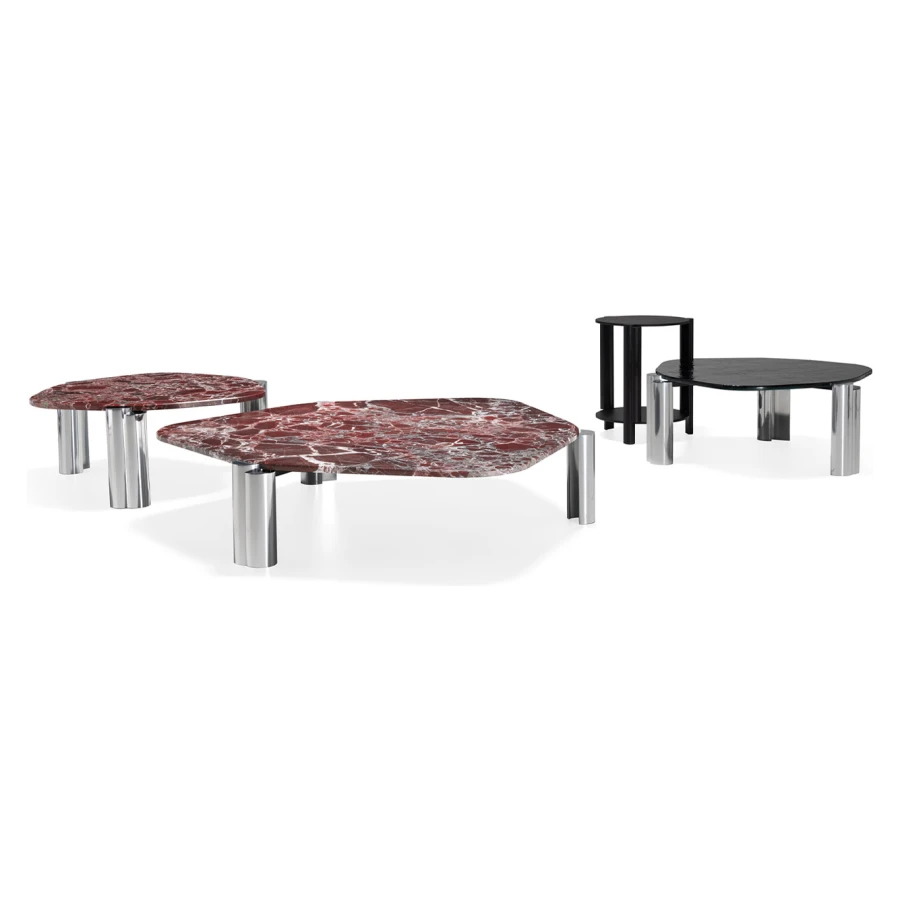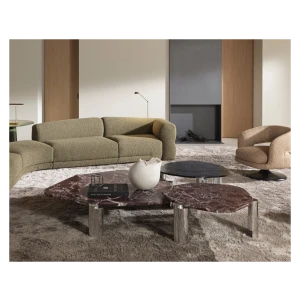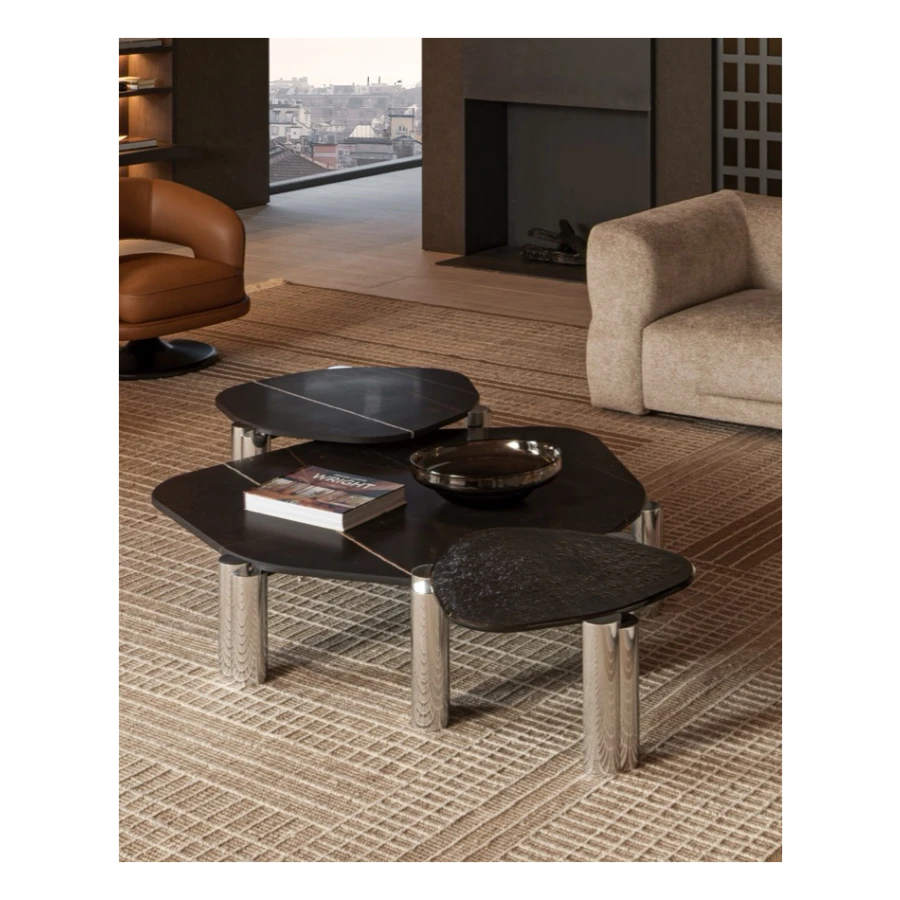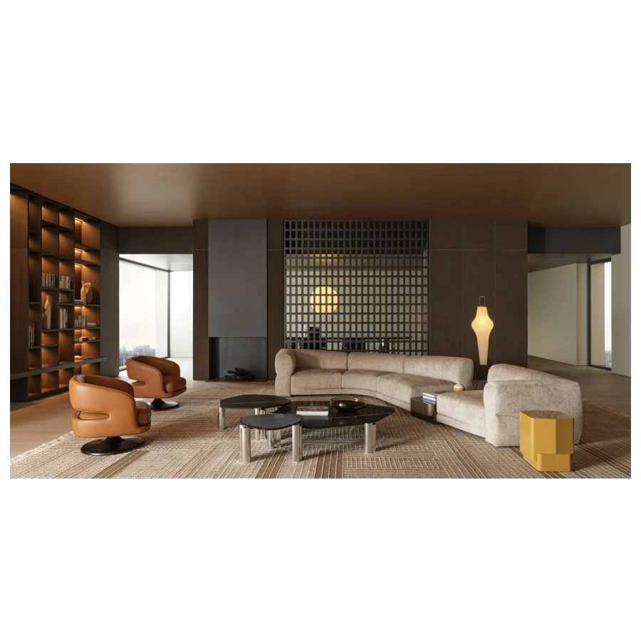 A study in contrast and refinement, Maylis is a sculptural coffee table that balances geometric precision with organic richness. Designed by Christophe Delcourt, its hexagonal-multiform top is available in marble, tempered glass, and glossy lacquered finishes, each offering a distinctive aesthetic to the table. This bold yet fluid design integrates seamlessly with Delcourt’s wider collection, bringing a sense of movement and versatility to contemporary interiors.
