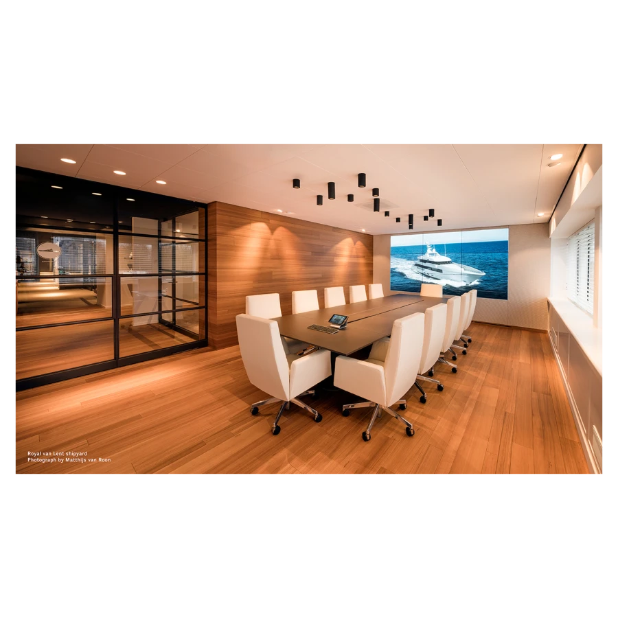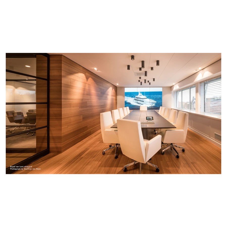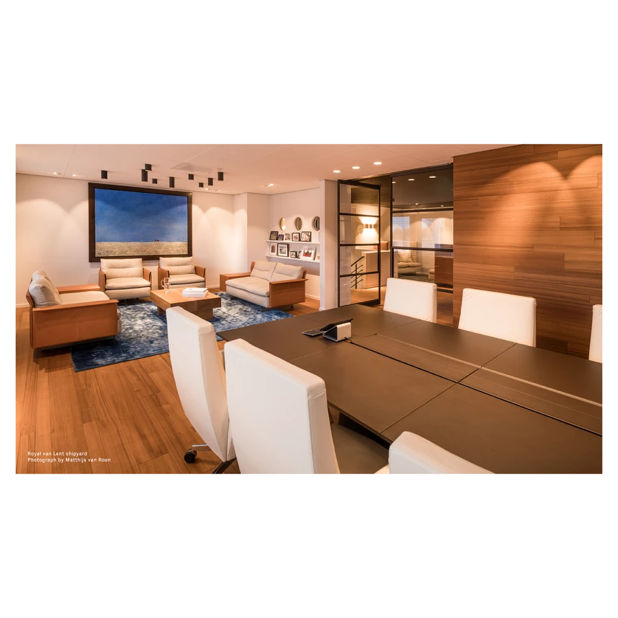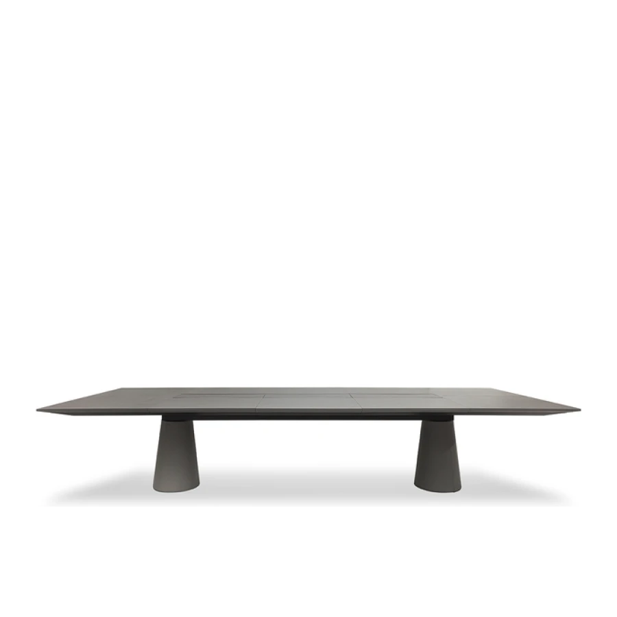 The concept of the table in its sculpted simplicity. Mesa. A Lella & Massimo Vignelli project from 1985. A fertile breeding ground from which Poltrona Frau has developed an increasingly broad and cross-functional collection. The Mesa Due Meeting Table is the new version for workspaces. Sophisticated materials, high-tech performance, flexible design. A system of round, oval or rectangular meeting tables.