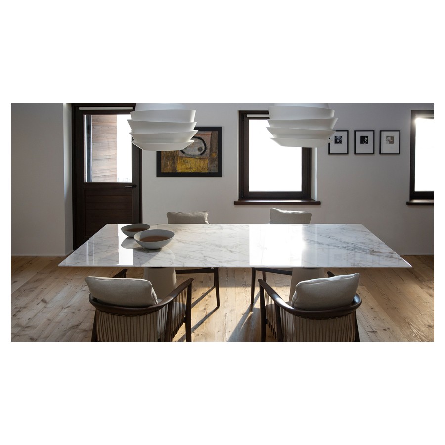Poltrona Frau has carried out an interesting philological work on the Mesa project: on the basis of a number of original designs by Lella and Massimo Vignelli, it has created a number of new versions of the original table, calling them, fittingly, Mesa Due. Due – two – like its simple geometric shapes, a circle and a cone, combined together to form a table bursting with personality and style.