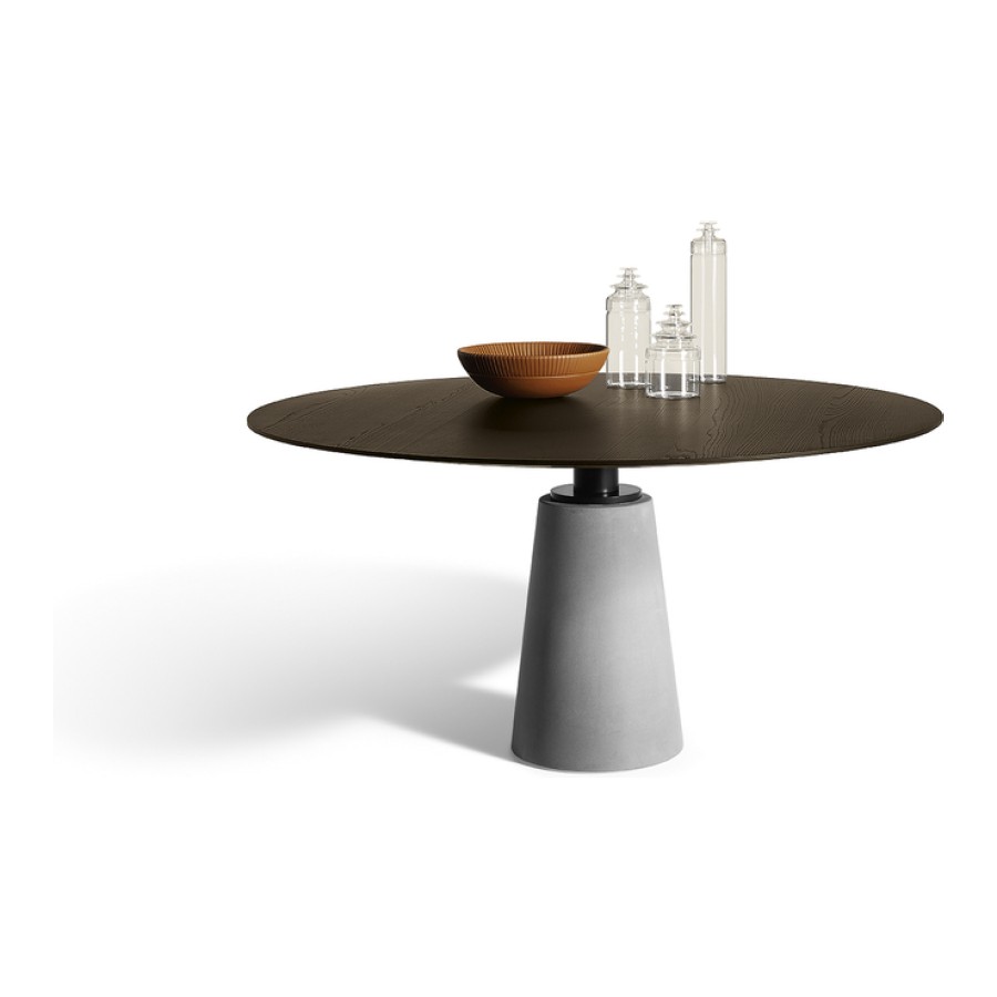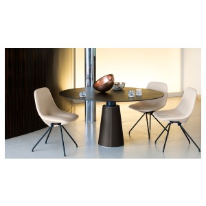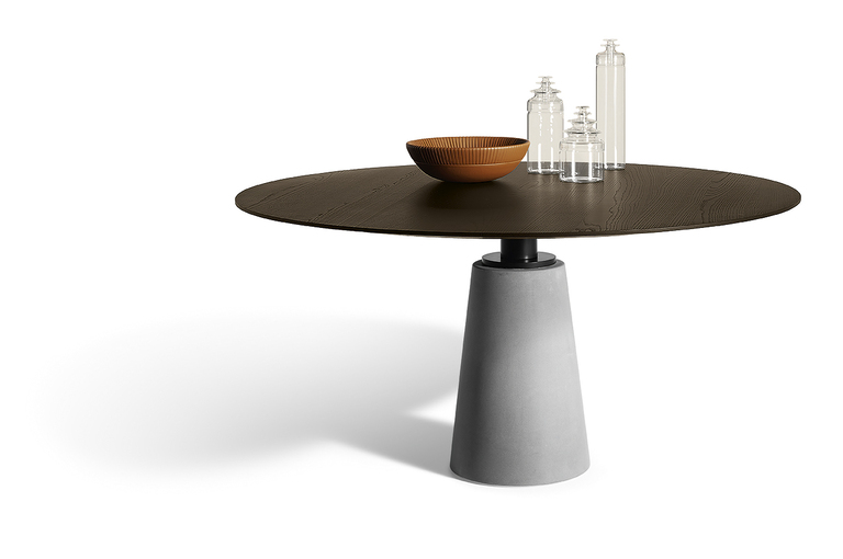 Poltrona Frau has carried out an interesting philological work on the Mesa project: on the basis of a number of original designs by Lella and Massimo Vignelli, it has created a number of new versions of the original table, calling them, fittingly, Mesa Due. Due – two – like its simple geometric shapes, a circle and a cone, combined together to form a table bursting with personality and style.