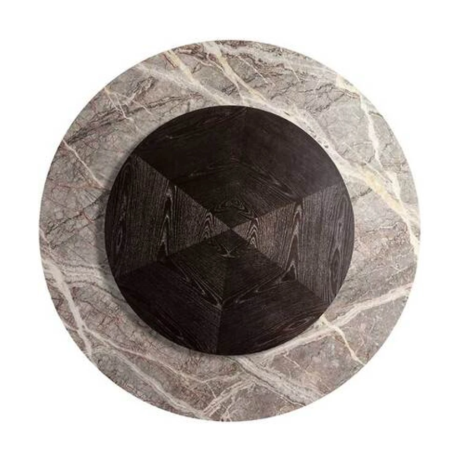 The Mesa table model with slate top and load bearing column in pietra serena is joined by new sizes that offer a greater variety of possible uses: the Mesa Due model comes as a bistro table with diameter of 120 cm, a dining table with diameter of 150 or 180 cm, and a rectangular table measuring 260 x 110.