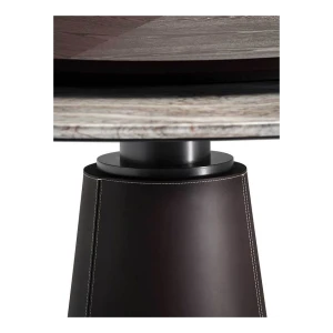 The Mesa Due tables with leather or saddle leather column and top in wood or upholstered in Pelle Frau® leather can come with a hideaway electric socket tower, chosen and requested by the customer upon purchase.