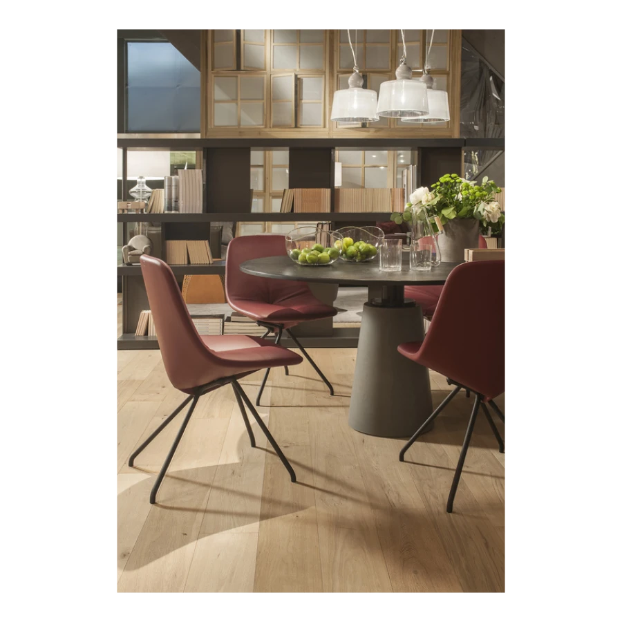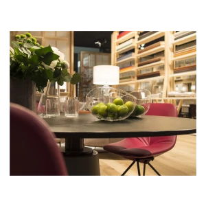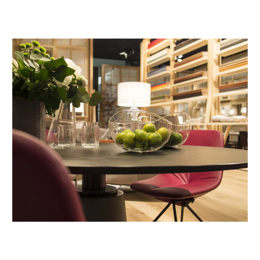 An icon of formal purity designed in 1985 by Lella and Massimo Vignelli and now re-released by Poltrona Frau. The Mesa table is formed by combining two simple geometric shapes, a circle and a cone. The result is a strong and tangible, almost sculptural table, but with a lightness that comes from the simplicity of the design.