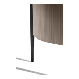 The exterior of the Mi storage units is upholstered in Saddle Extra leather printed with a canneté texture. There are four possible colours: Carbone, Cammello, Polvere and Corda.
