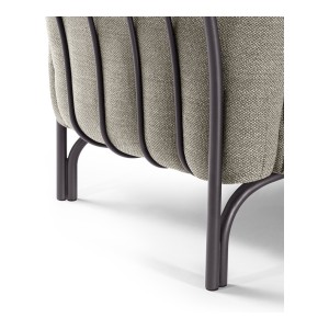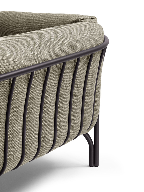 The Mirabell collection draws inspiration from the timeless elegance of 20th-century French metal benches and seats. Painted wrought iron furniture that graced parks or elegant private gardens. GamFratesi reinterprets this decorative spirit with a contemporary, more essential and rigorous language. The seats and other elements of the collection are supported by a metal frame raised off the ground with a double foot. Taking cues from rattan furniture typically used in outdoor furniture, the structure incorporates a series of woven metal elements, creating the illusion of a large suspended basket ready to accommodate plush upholstered cushions or small table tops. This element, with its distinctive supporting curve, serves as the hallmark of the entire outdoor collection.