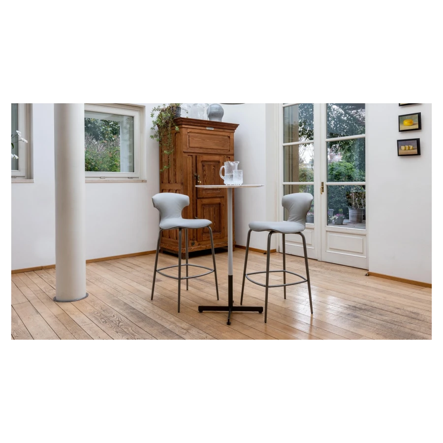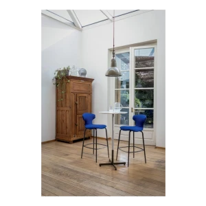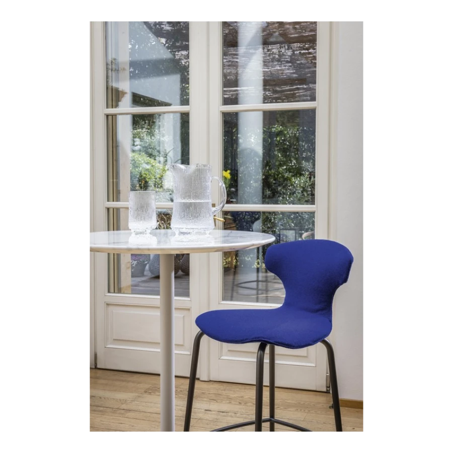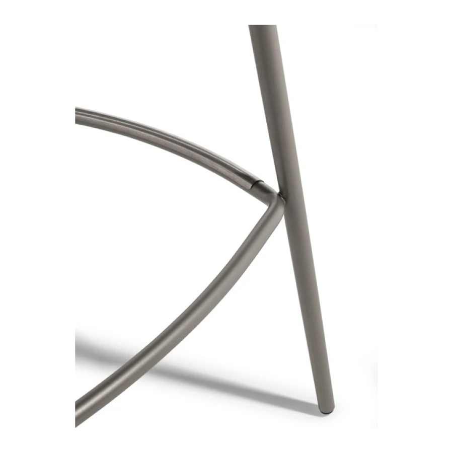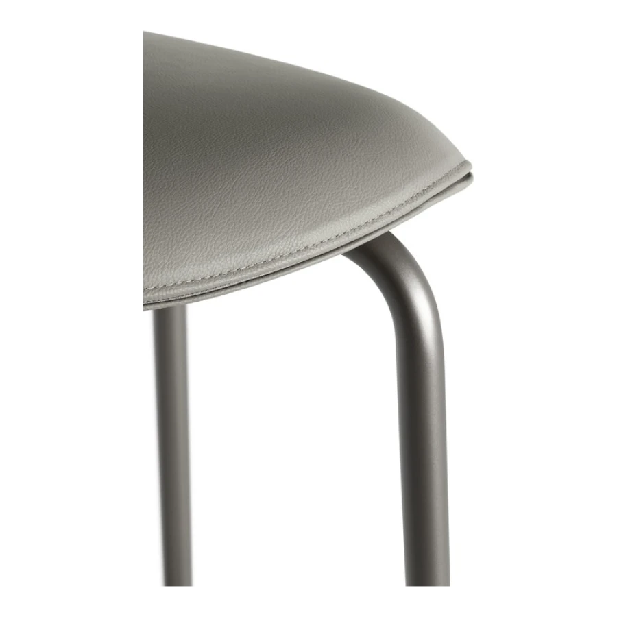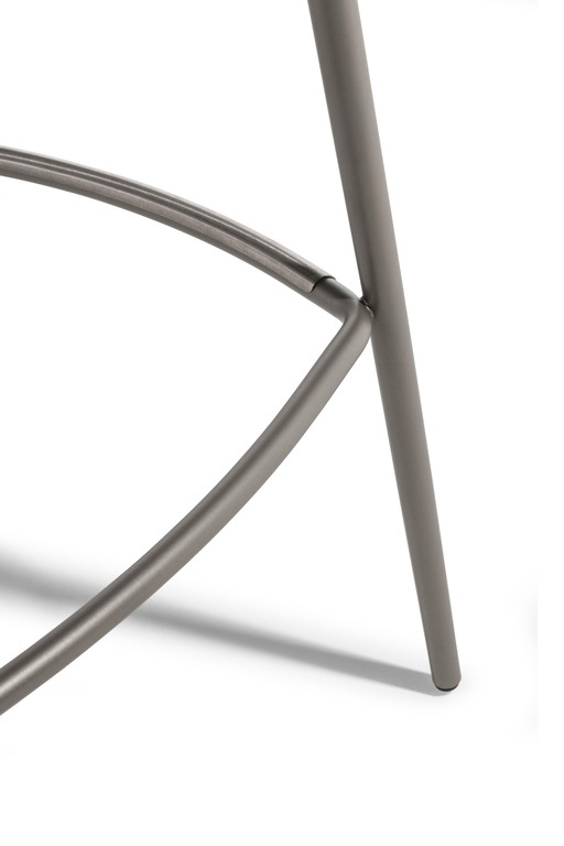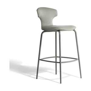 The Montera Mas stool, upholstered in Pelle Frau® leather or removable fabric, is available in two heights and is marked by the softness of the seat, made of polyurethane foam. The metal base is composed of tubular steel legs, available in multiple finishes. The legs are connected by a footrest ring in the same finish as the base and equipped with a brushed stainless steel scratch guard plate.