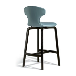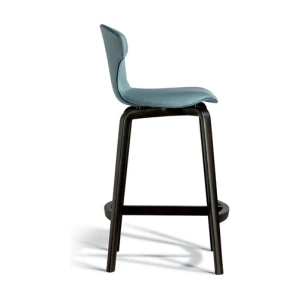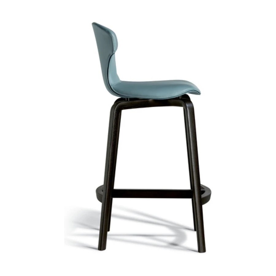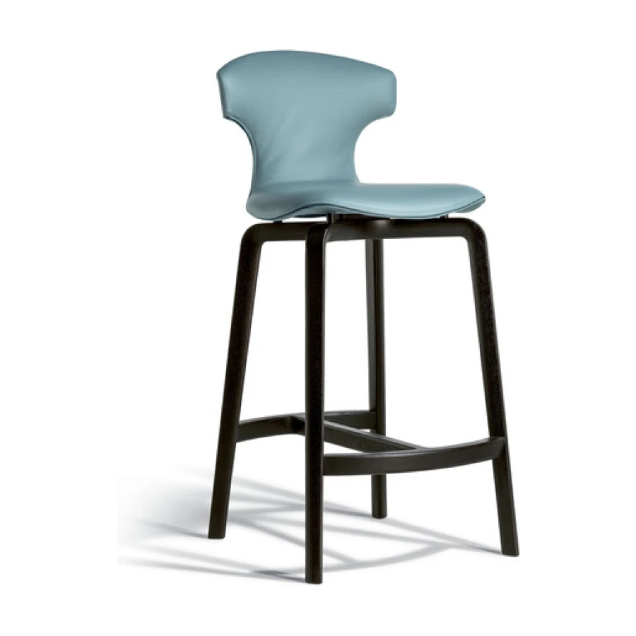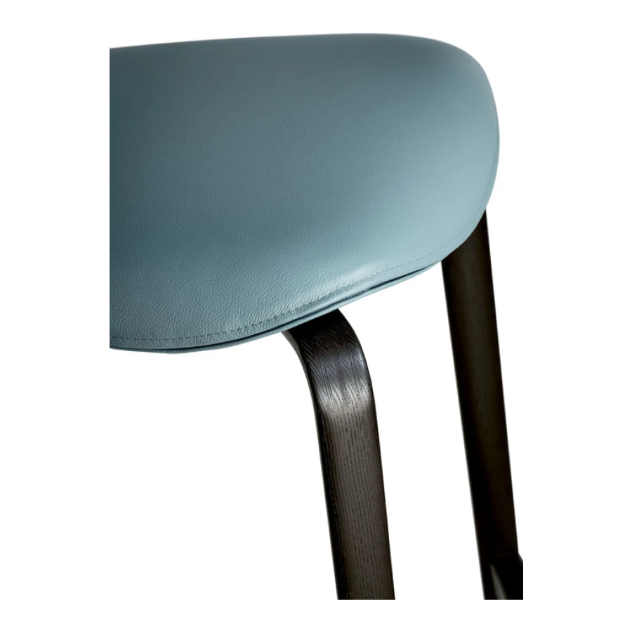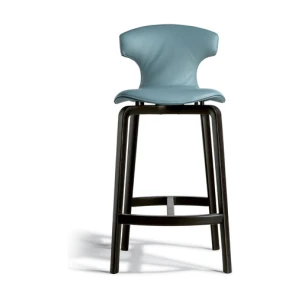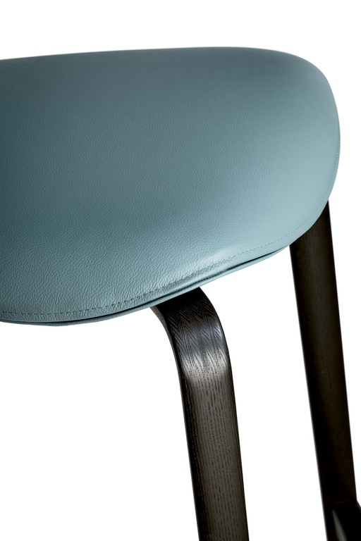 The Montera Mas stool, upholstered in Pelle Frau® leather or removable fabric, is available in two heights and is marked by the softness of the seat, made of polyurethane foam. The solid ash wood base is available in a variety of finishes.