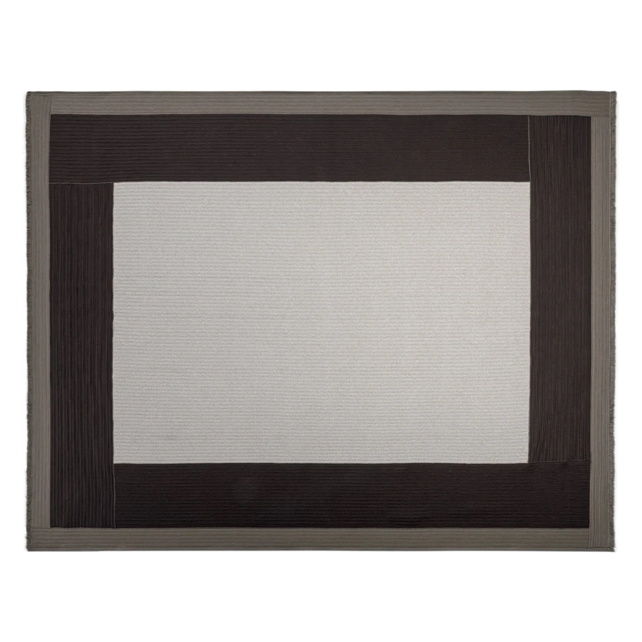 Musco, by Marta Ferri, proposes geometric patterns and run-up bands that enhance a palette inspired by the shades of the undergrowth. Available both monochrome in beige and olive green, and multicoloured in shades of olive green, earth brown and sand, it is complemented by tone-on-tone or contrasting fringes. There are two distinct shapes – rectangular and round – characterised by a rustic yet pleasant touch.