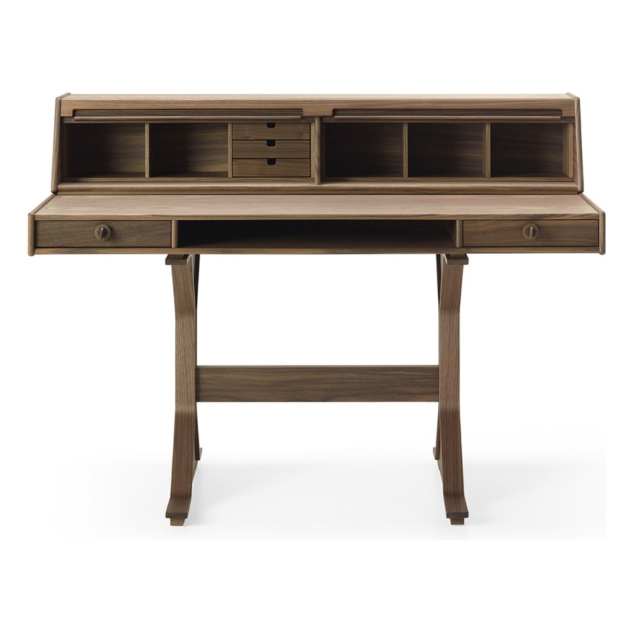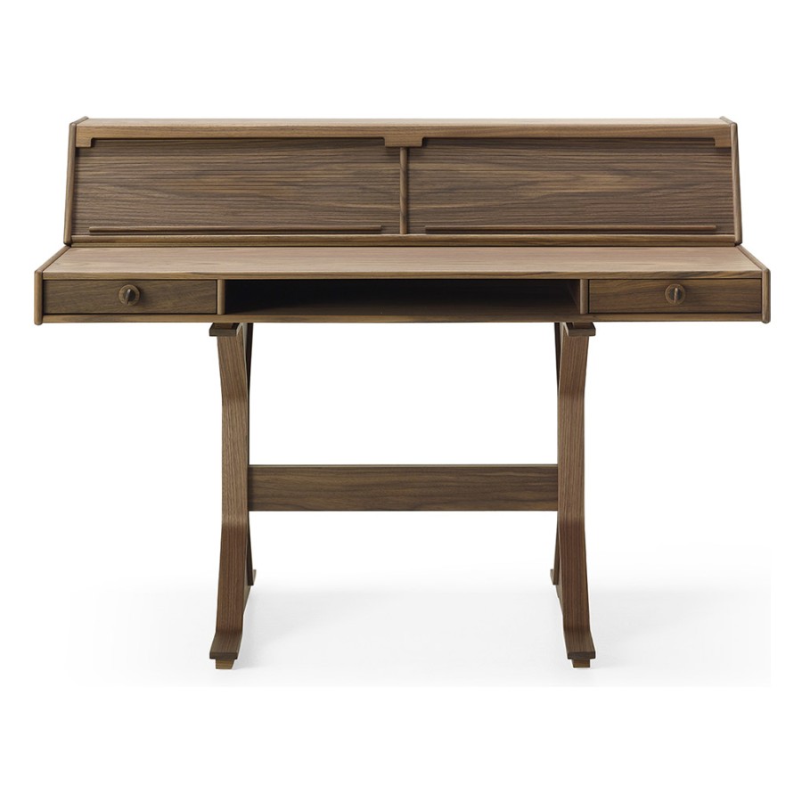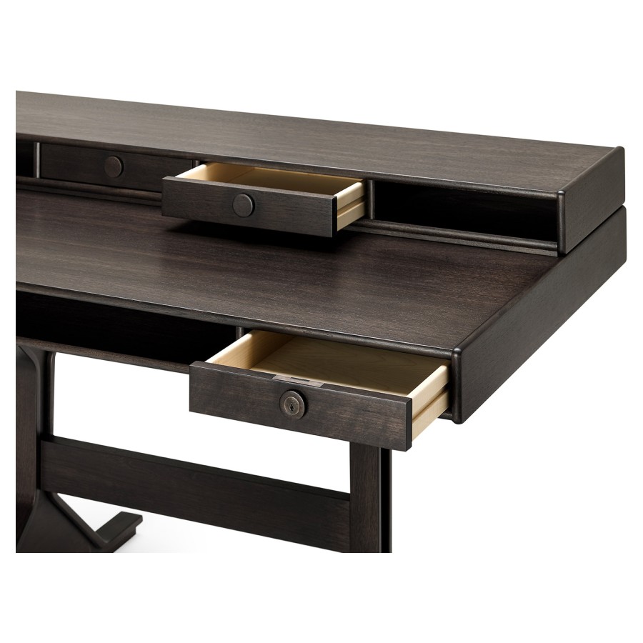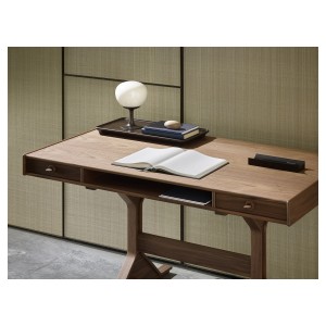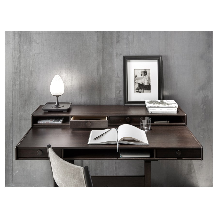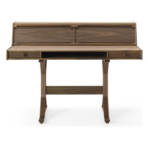 From the passion for the care and workmanship of wood that connects Gianfranco Frattini and Franco Ceccotti – further emphasized, in fact, by the presence of a copy of the Milanese architect’s small desk at the home of the founder of the Cascina company – the idea was born to present this historic piece of furniture for interiors, in full continuity with the original project. In its three editions – all in American walnut and available in the four colours in the catalogue: natural, moka, brown and dark – you can feel the care and craftsmanship that goes into the production of the furniture, giving it an authentically classic and always current look. The small desk, a place of memory but also historically a guardian and witness to the knowledge of humanity, becomes a piece of furniture with essential but refined lines, capable of adapting harmoniously to spaces thanks to its perfect balance between elegant details and the sobriety of the structure.
