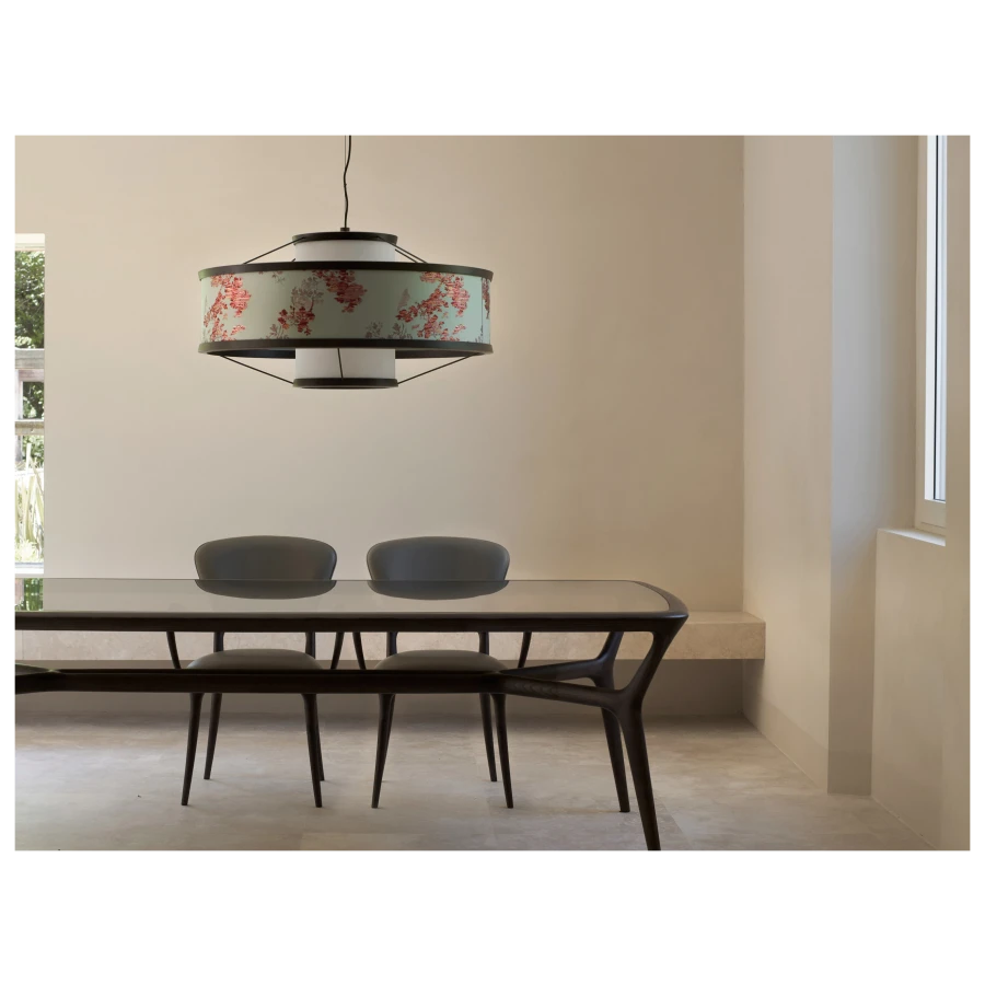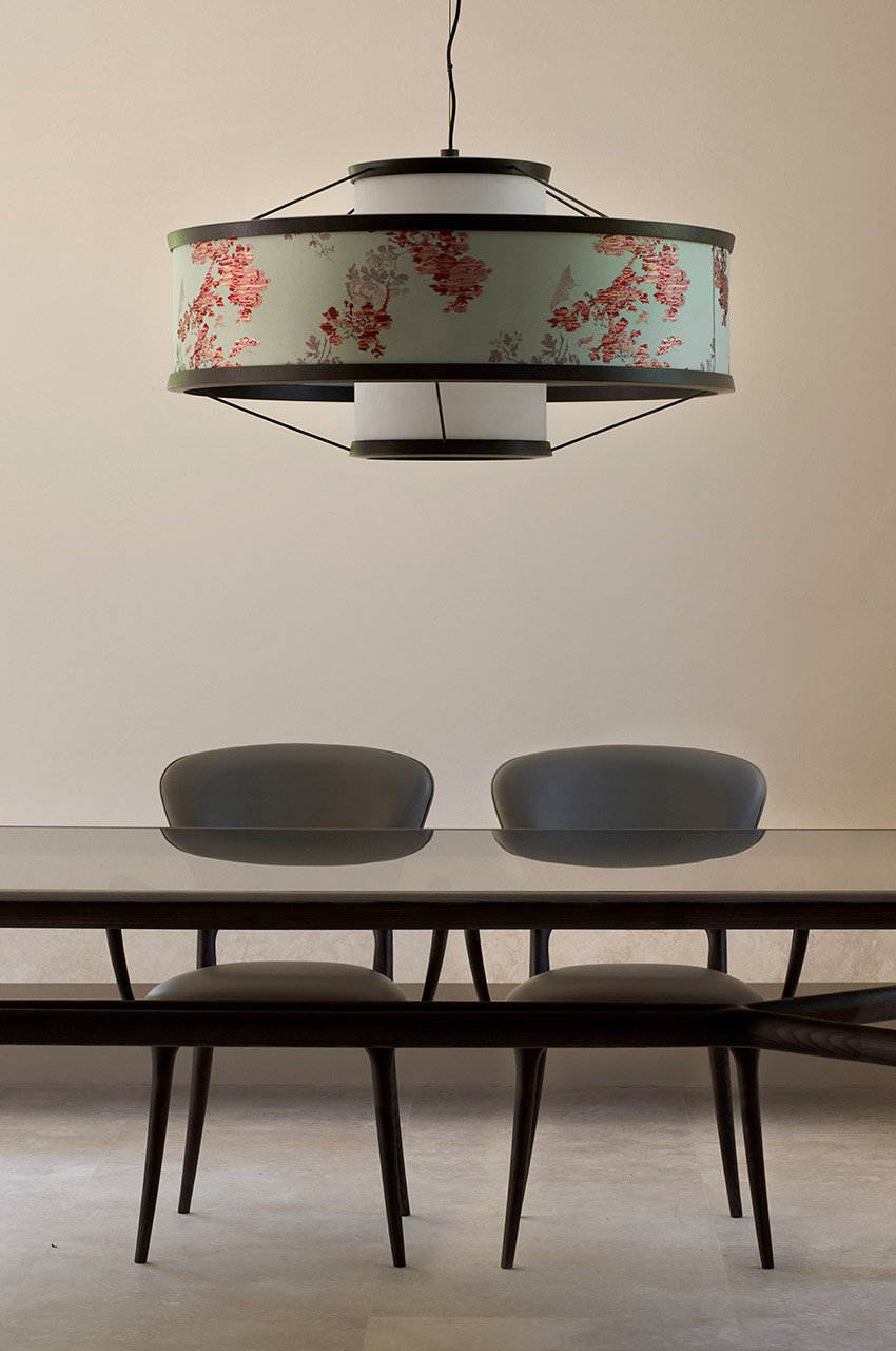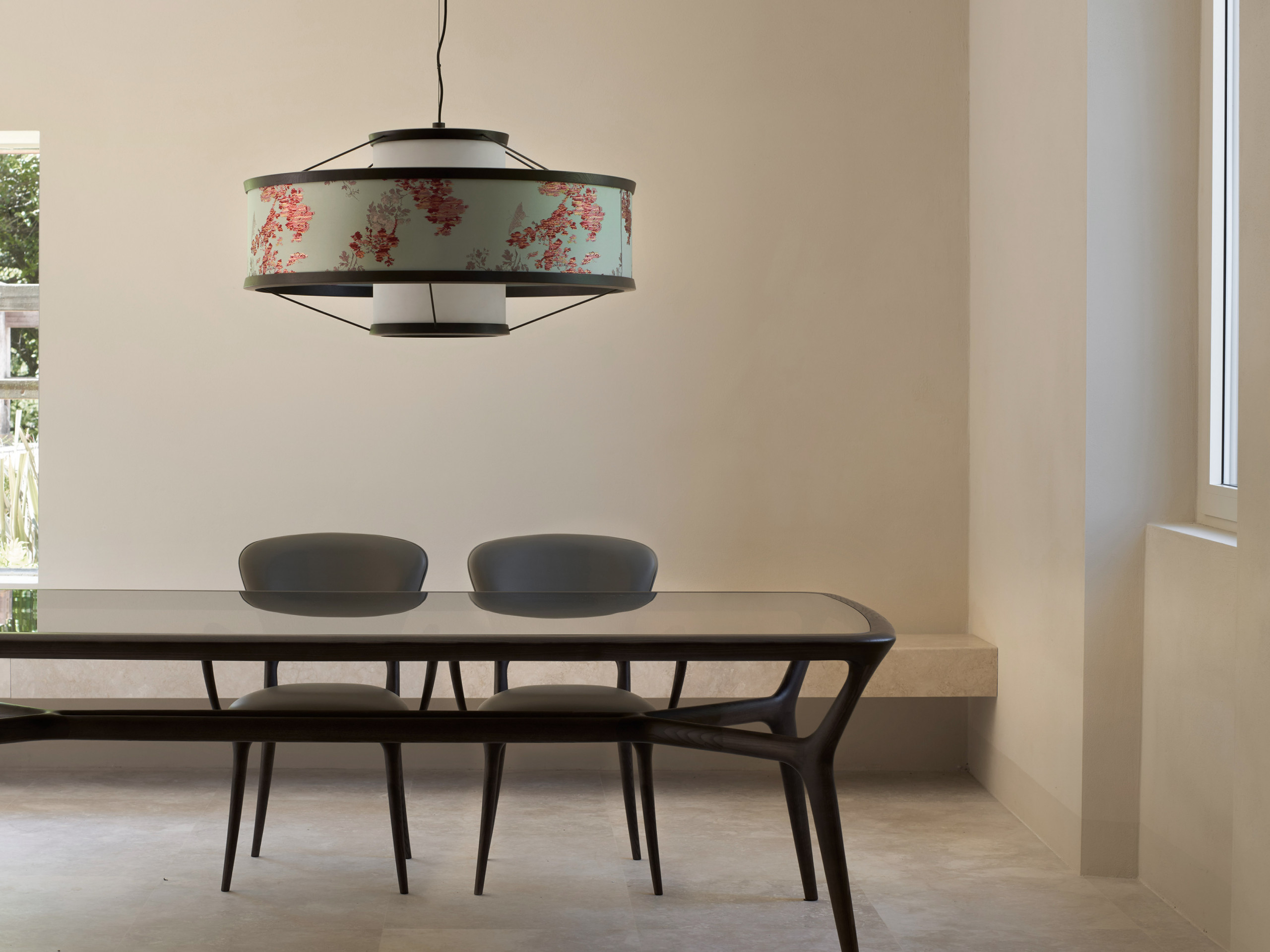 And indeed, this lamp was inspired by traditional Japanese lanterns. With its lightness and generous dimensions, it becomes a symbolic object under which family and friends meet to dine, be together and cultivate relationships.