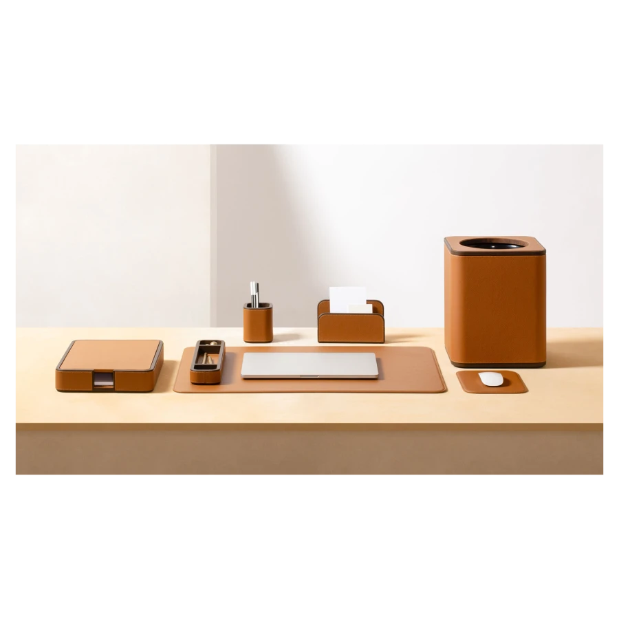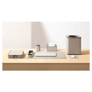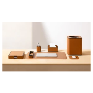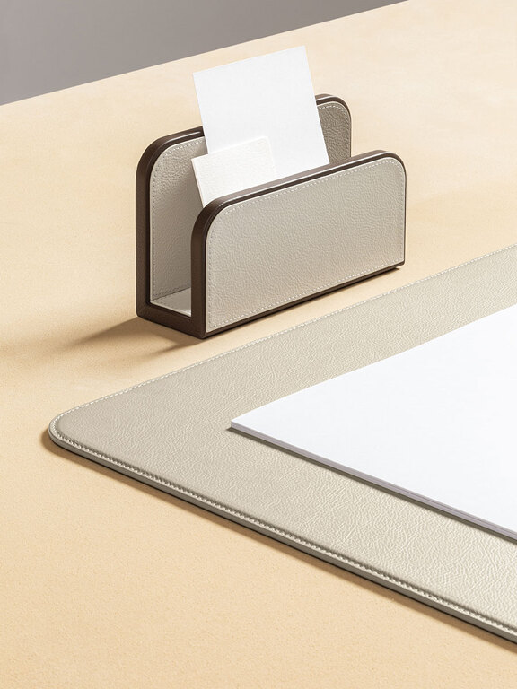 The Office Collection, created in cobranding with Giobagnara, is a family of coordinated accessories designed to make the office or workstation more practical and enjoyable. The meticulously finished objects, all upholstered in Pelle Frau® leather, add a touch of elegance to the office environment.