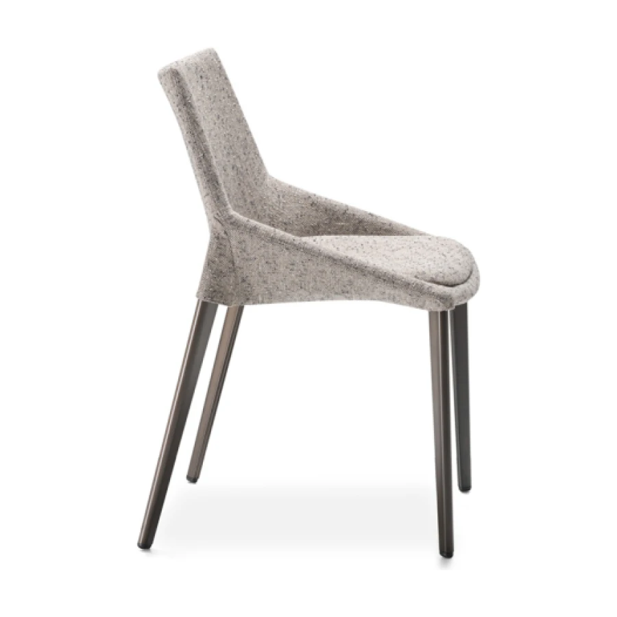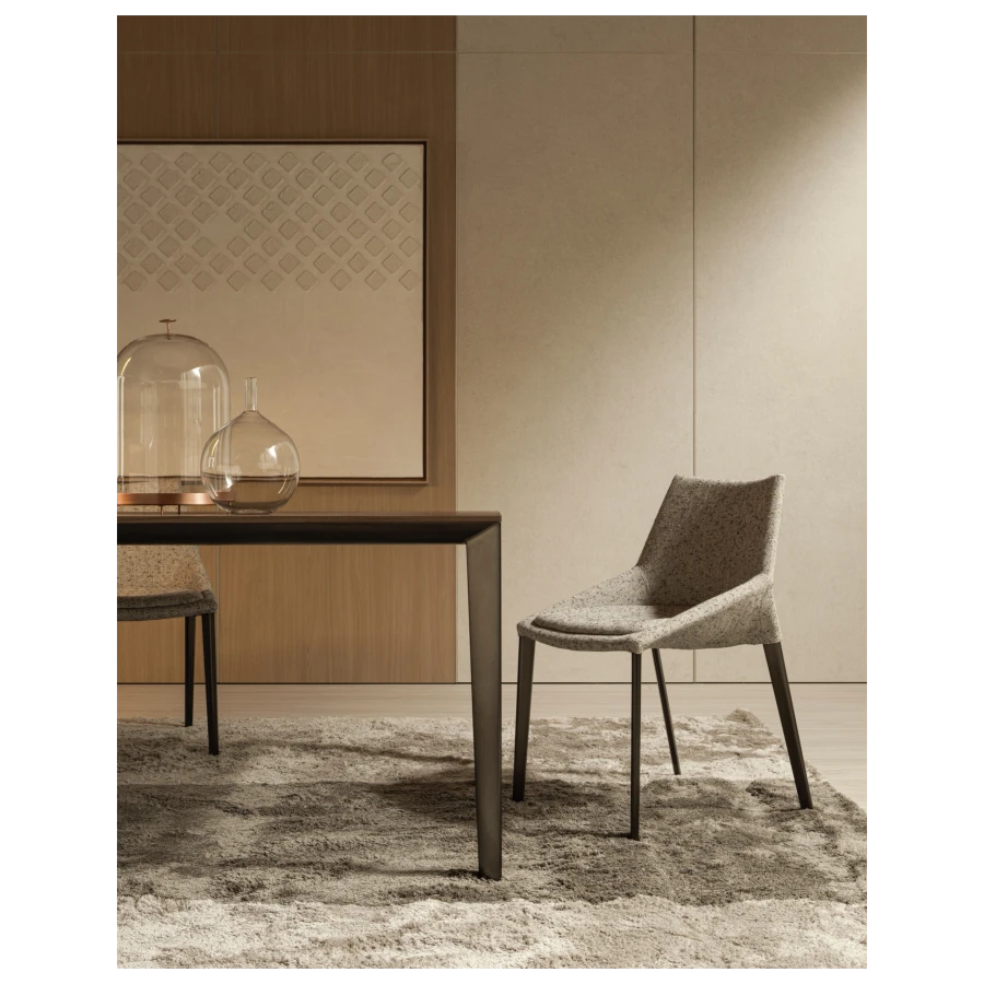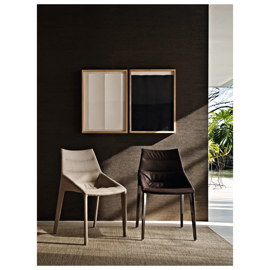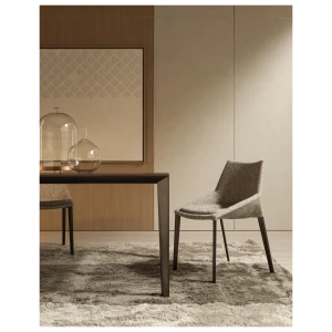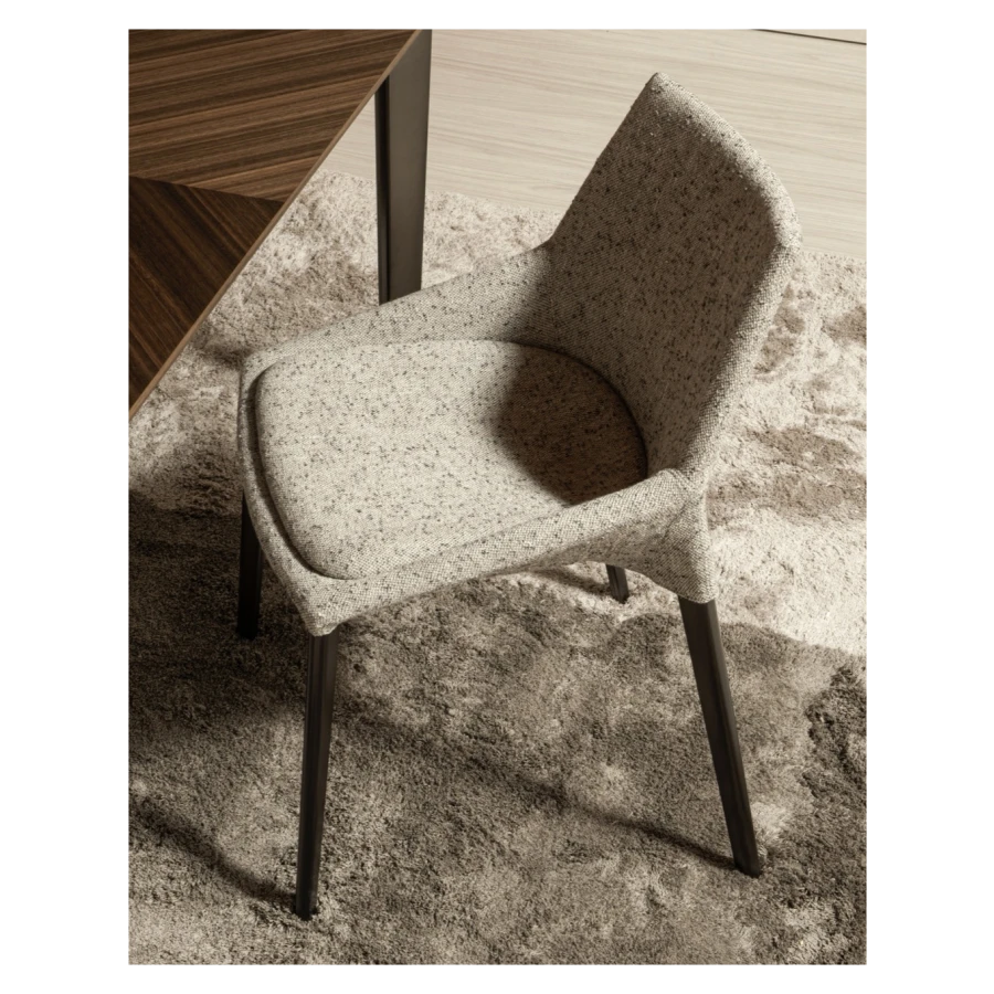 Outline is the ideal complement to all tables thanks to the multitude of versions available: entirely made of fabric, leather or fabric, with metal legs.