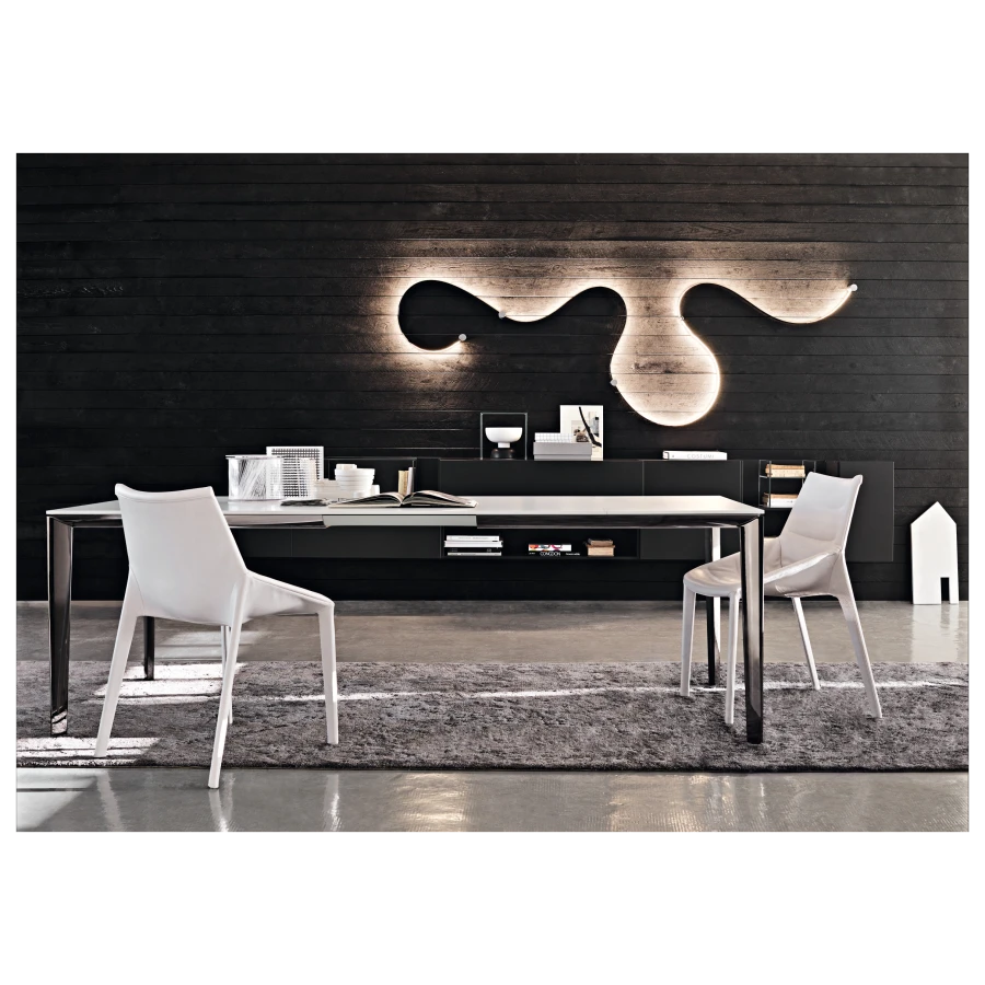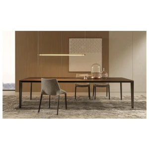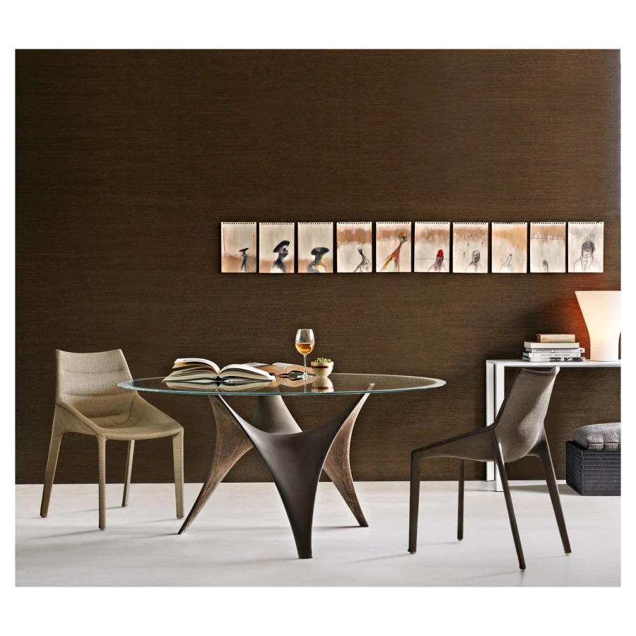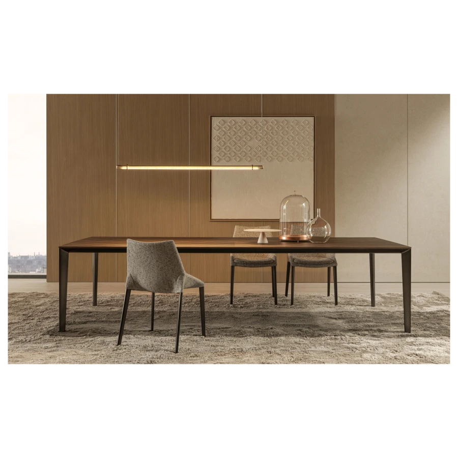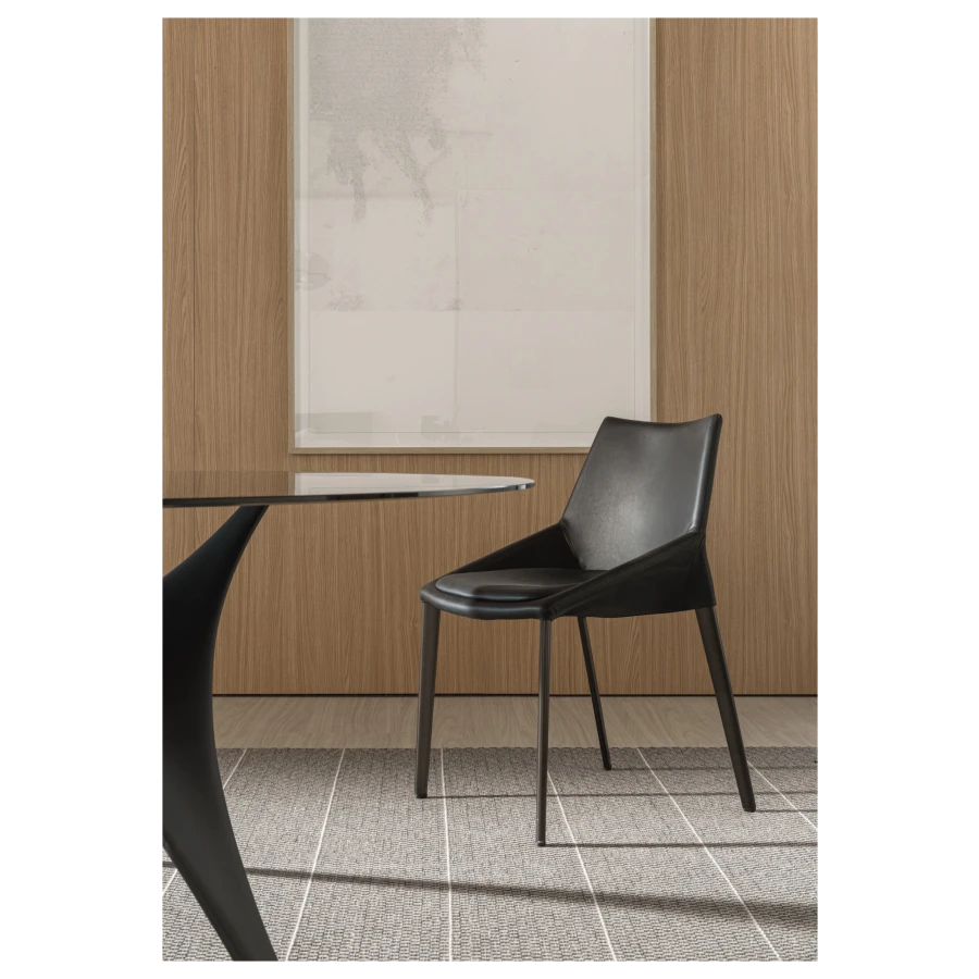 Outline is the ideal complement to all tables thanks to the multitude of versions available: entirely made of fabric, leather or fabric, with metal legs.