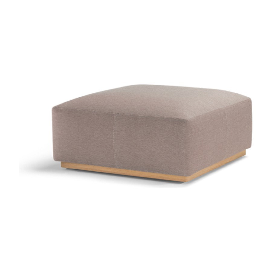 The harmonious lines of the Landmark Collection can also be found in the pouffe, which boasts a solid teak frame enriched with a polyurethane cushion for maximum support and comfort.