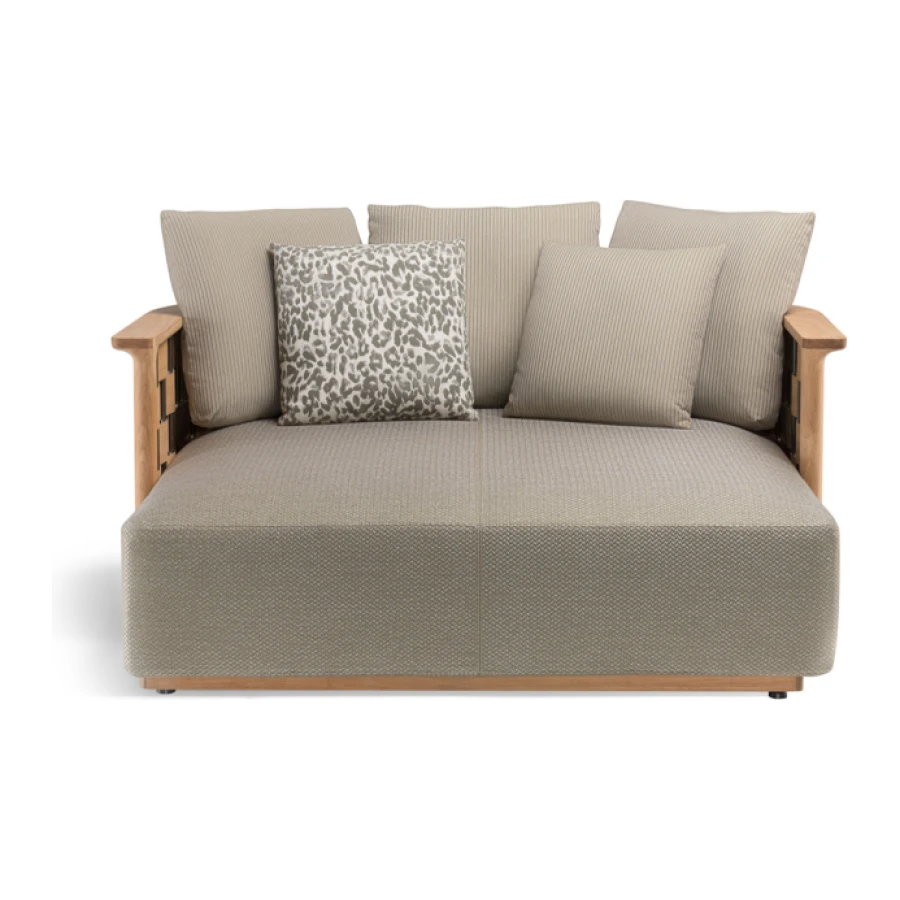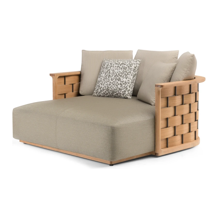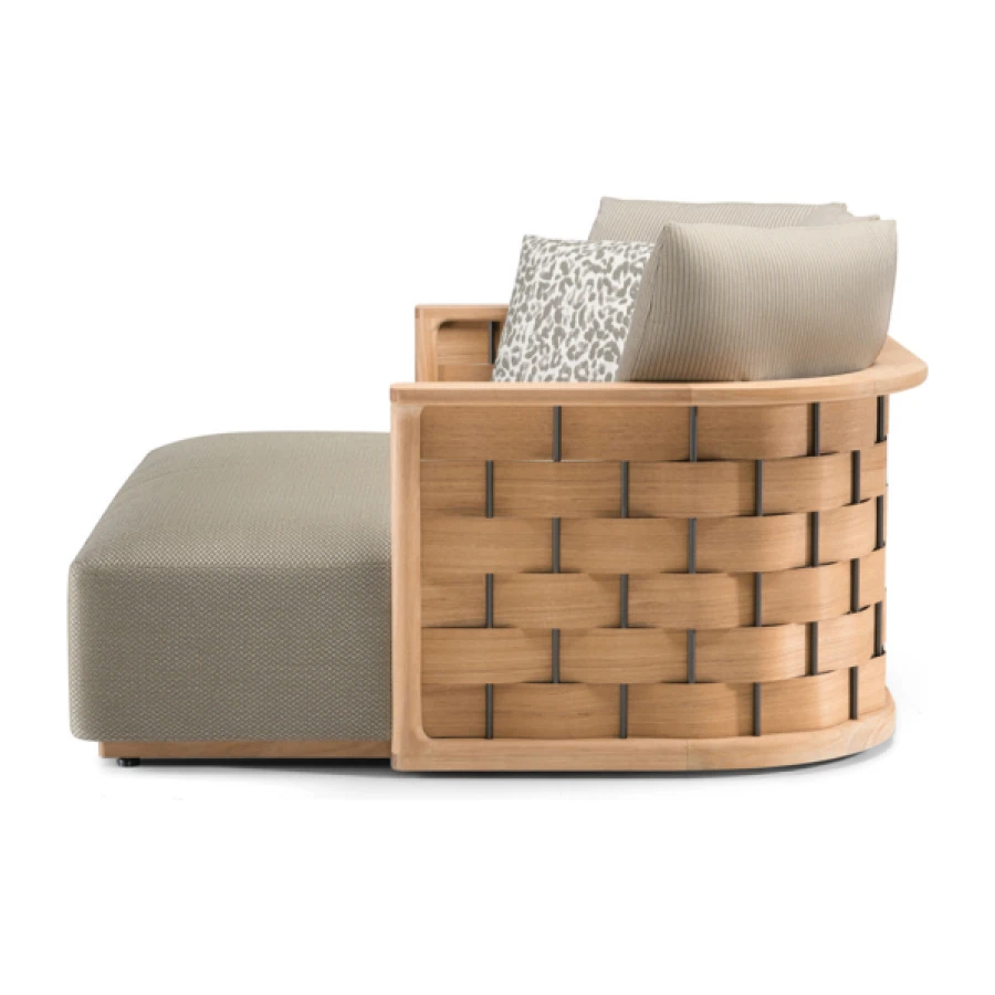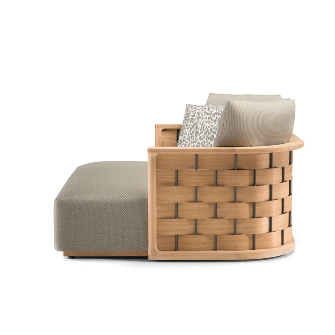 The Landmark Collection presents a modular system in solid teak, characterised by curved, soft, angular lines that give an intense feeling of comfort. The system is composed of a multiplicity of elements that can be placed side by side to create configurations that are always different, can be moved as desired, and can be reassembled.