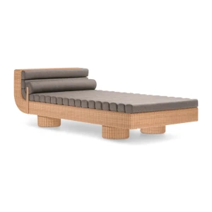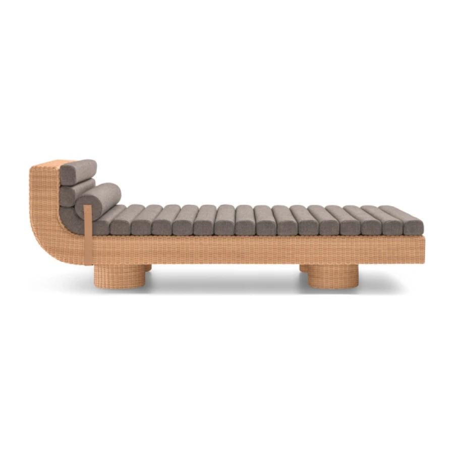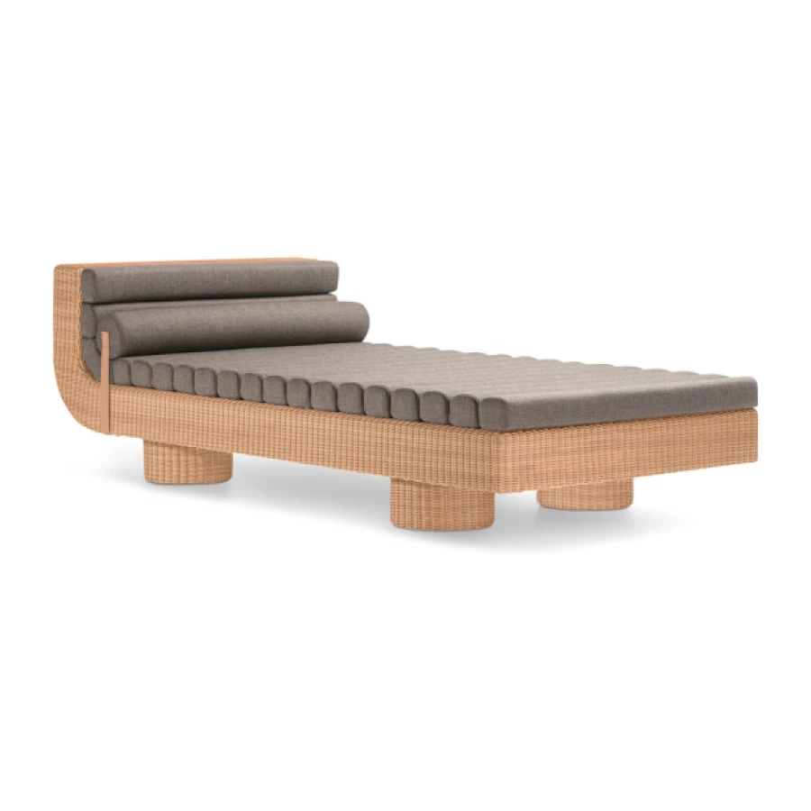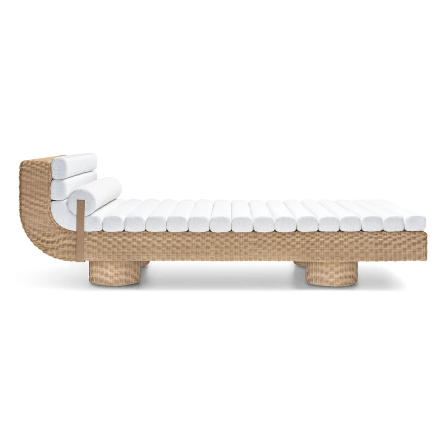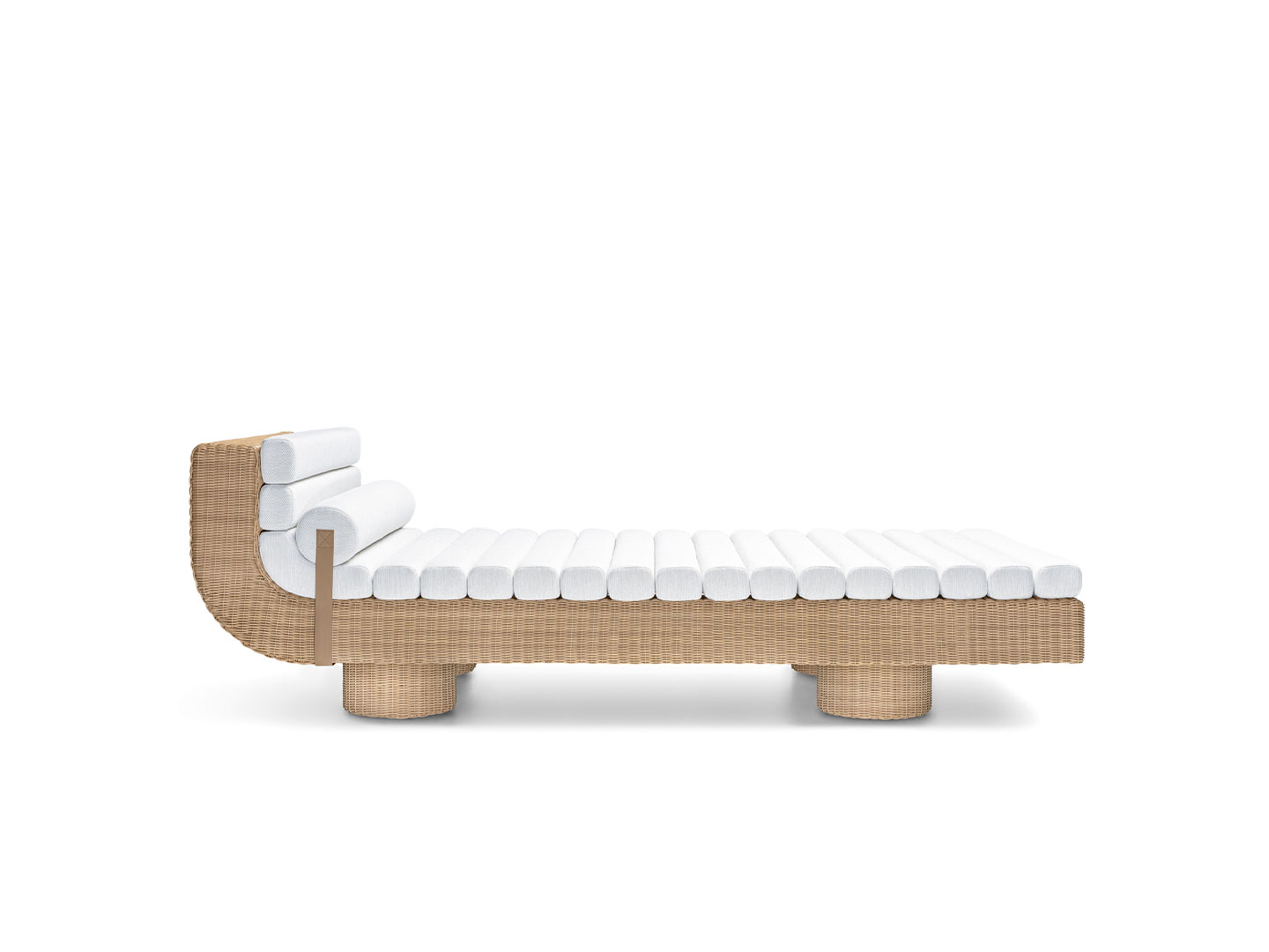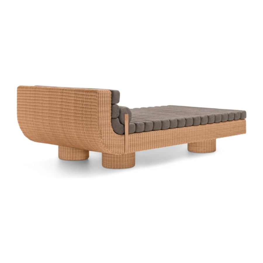 Built upon a sturdy aluminum base, the Pantalica daybed is carefully woven with weatherproof polypropylene rattan, infusing the piece with a natural look and feel that is preserved across time.