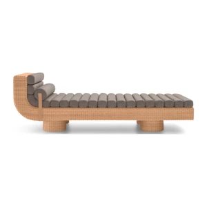 This chaise longue design is influenced by archaic forms, harkening back to the ancient cultures of Sicily and the Mediterranean basin. The daybed is crafted from materials that can be reintroduced to the production cycle at the end of life, making this distinctive piece a circular design.