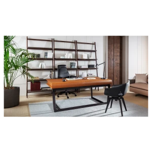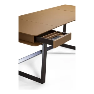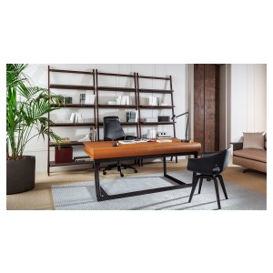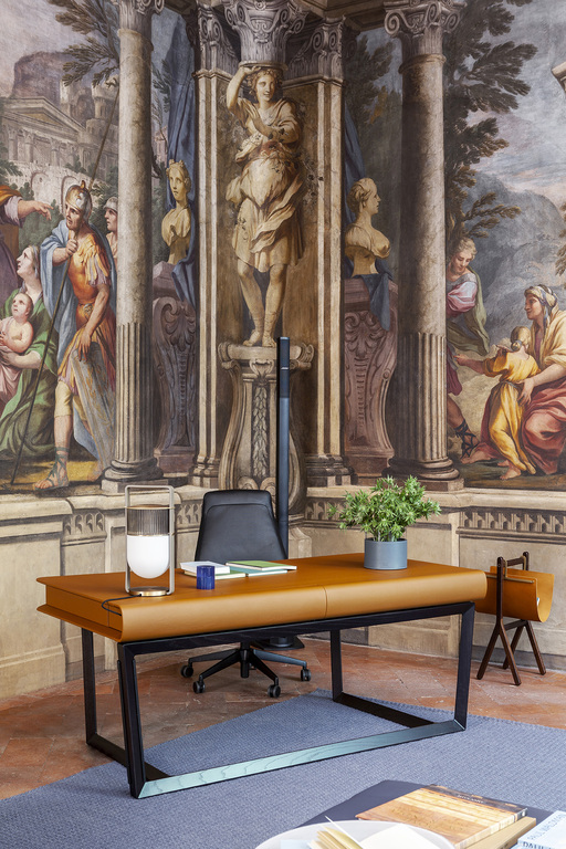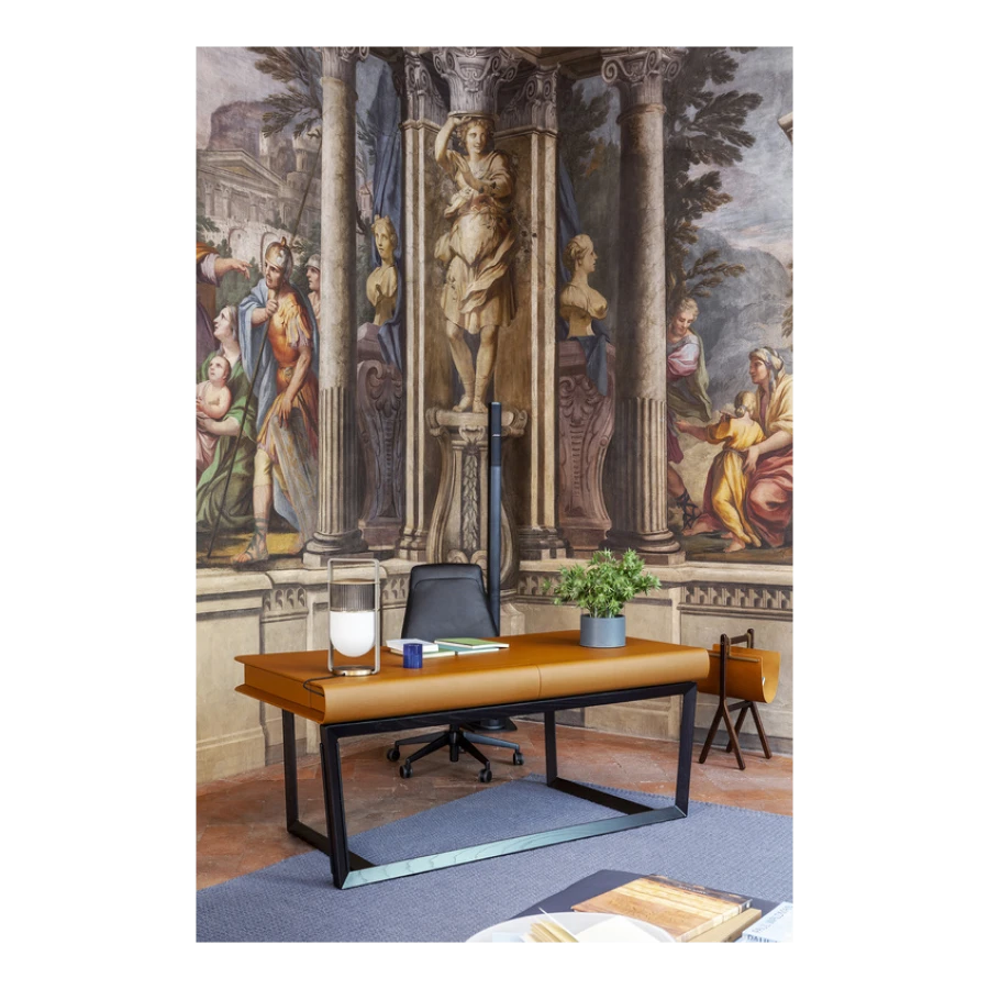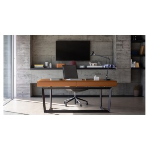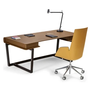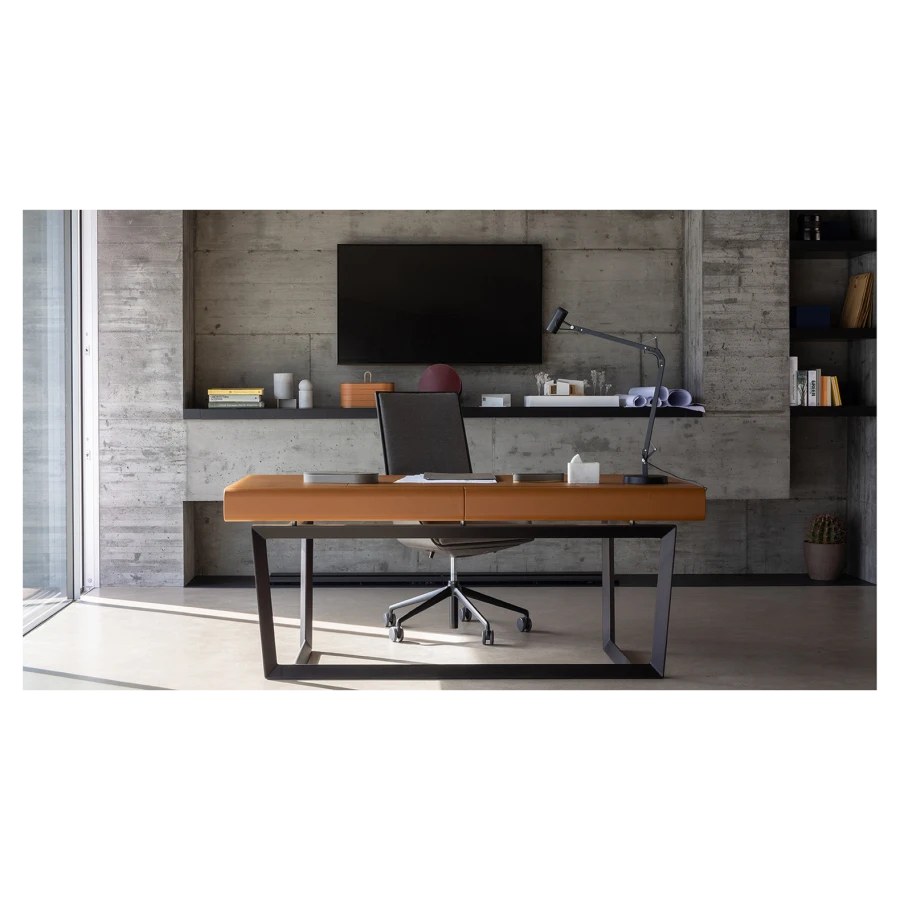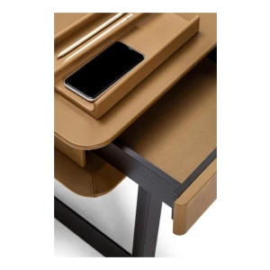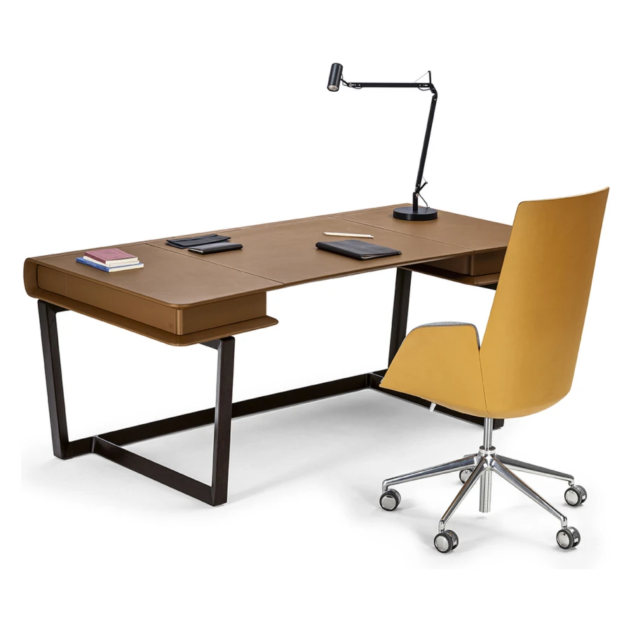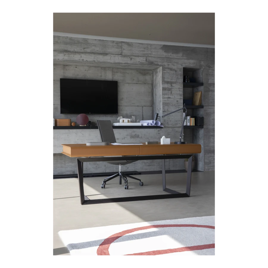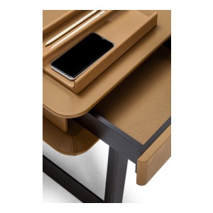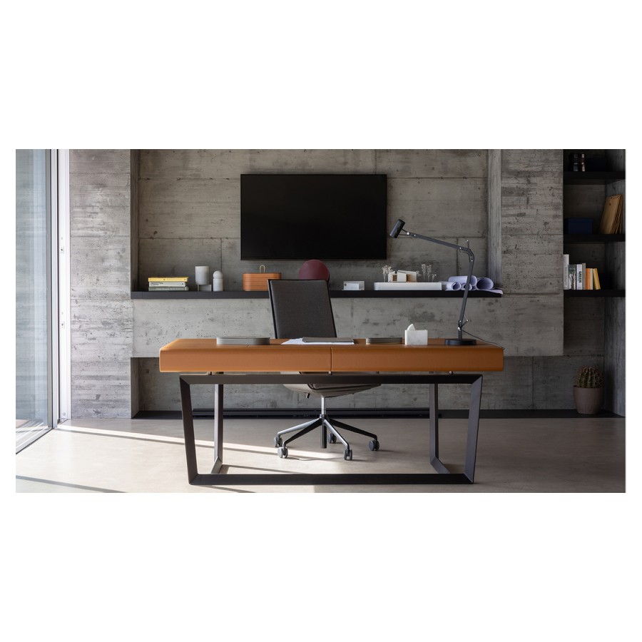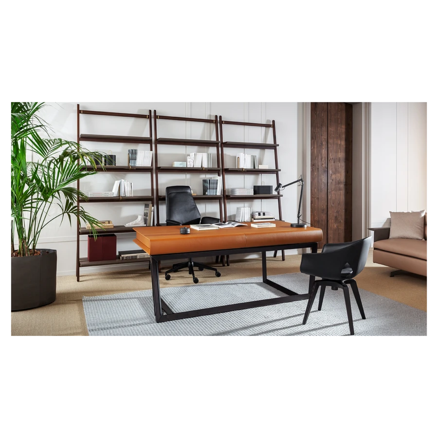Designed by Roberto Lazzeroni, the Peek-a-Book desk embodies all of the typical elegance and comfort of a Poltrona Frau office, ushering it into the domestic setting. Lazzeroni envisages a generous work surface and a design that revisits the materials, warmth and style of his residential collections while at the same time guaranteeing all of the functions of a “genuine” office desk.