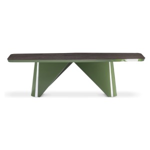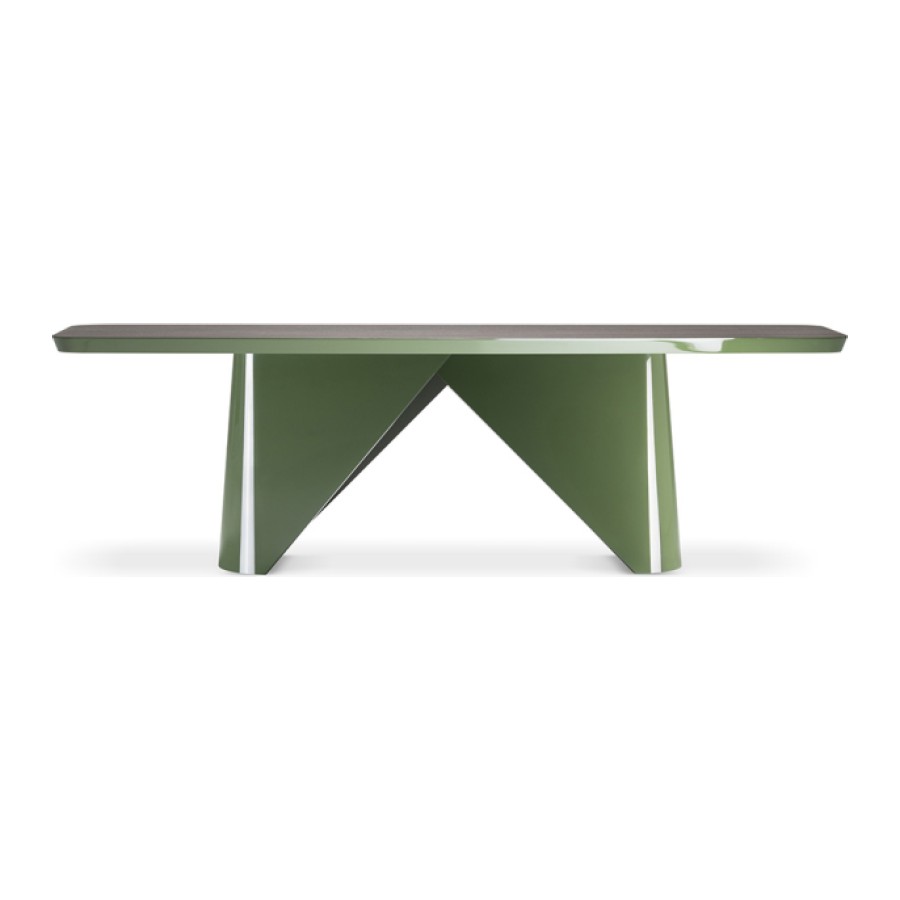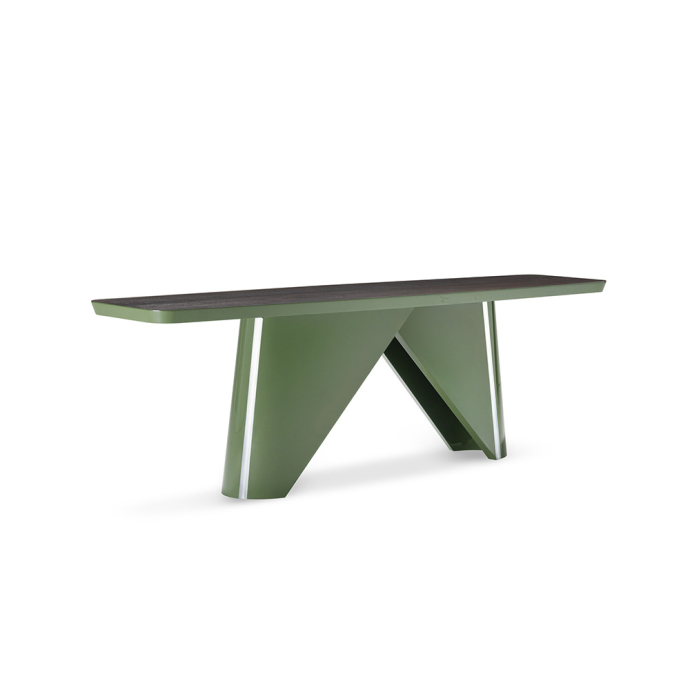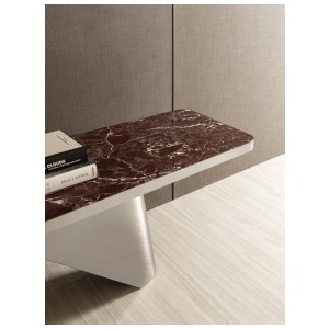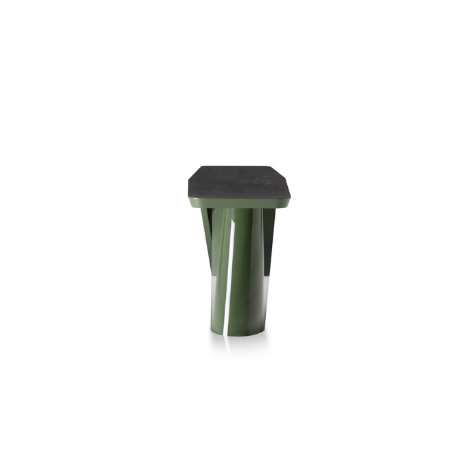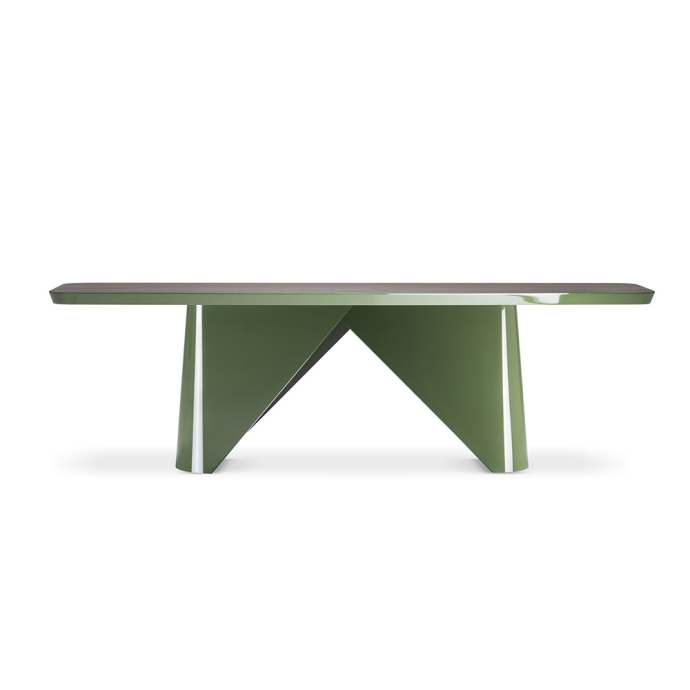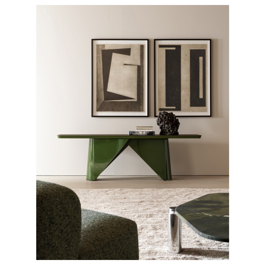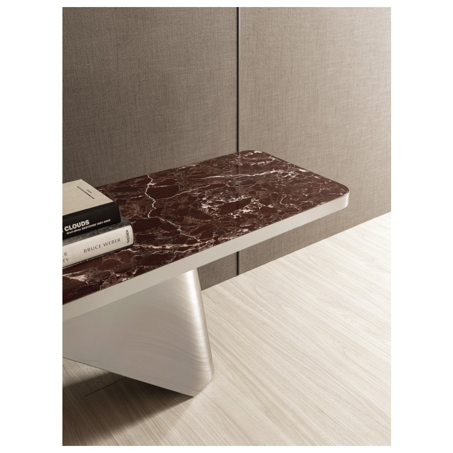 The consistency of the edge finish, echoed in the base’s glossy lacquer or polished steel, ensures a strong visual continuity throughout the piece. Whether placed against a wall or in the center of a room, Pénélope makes a striking statement, embodying sophistication and artistic integrity.