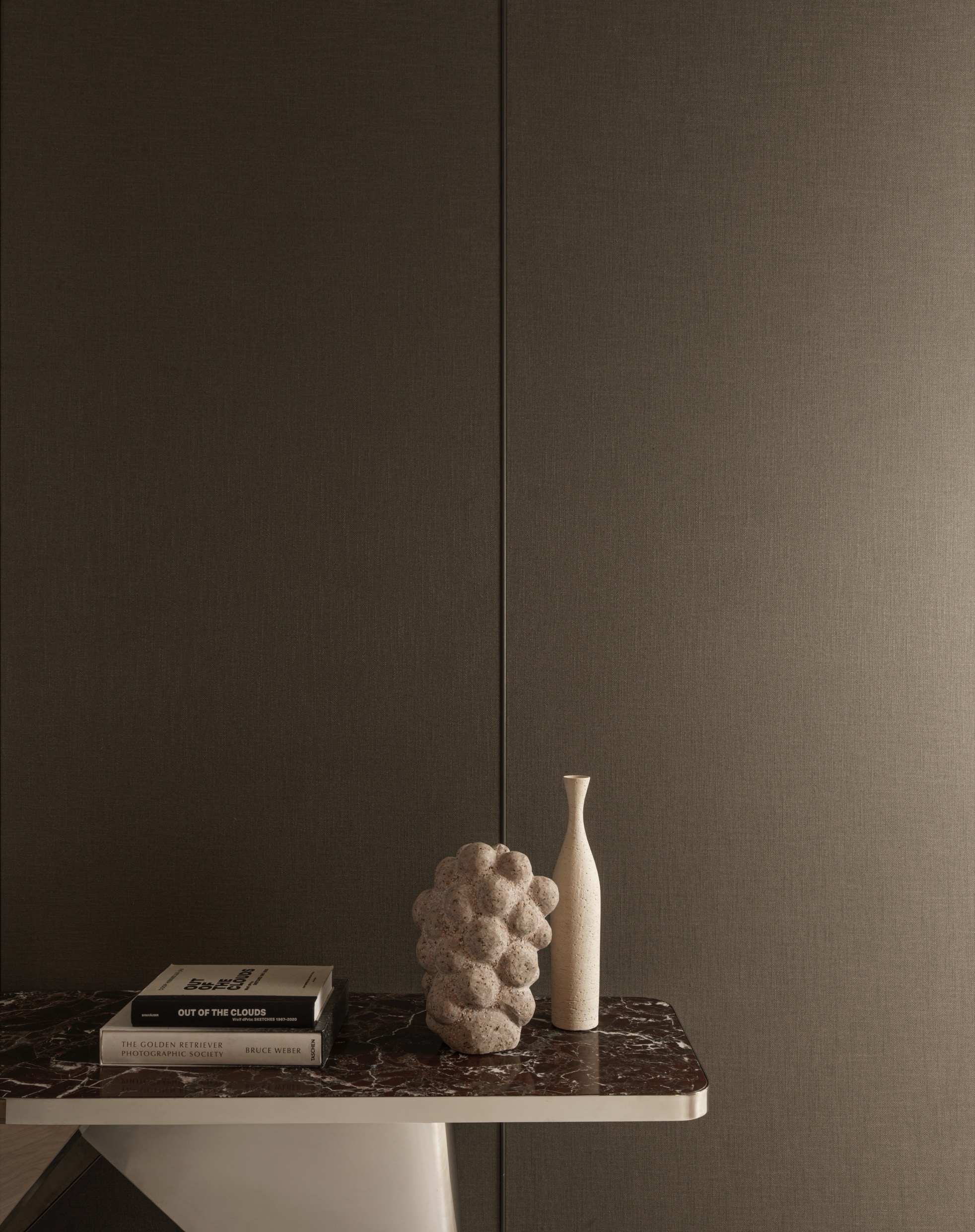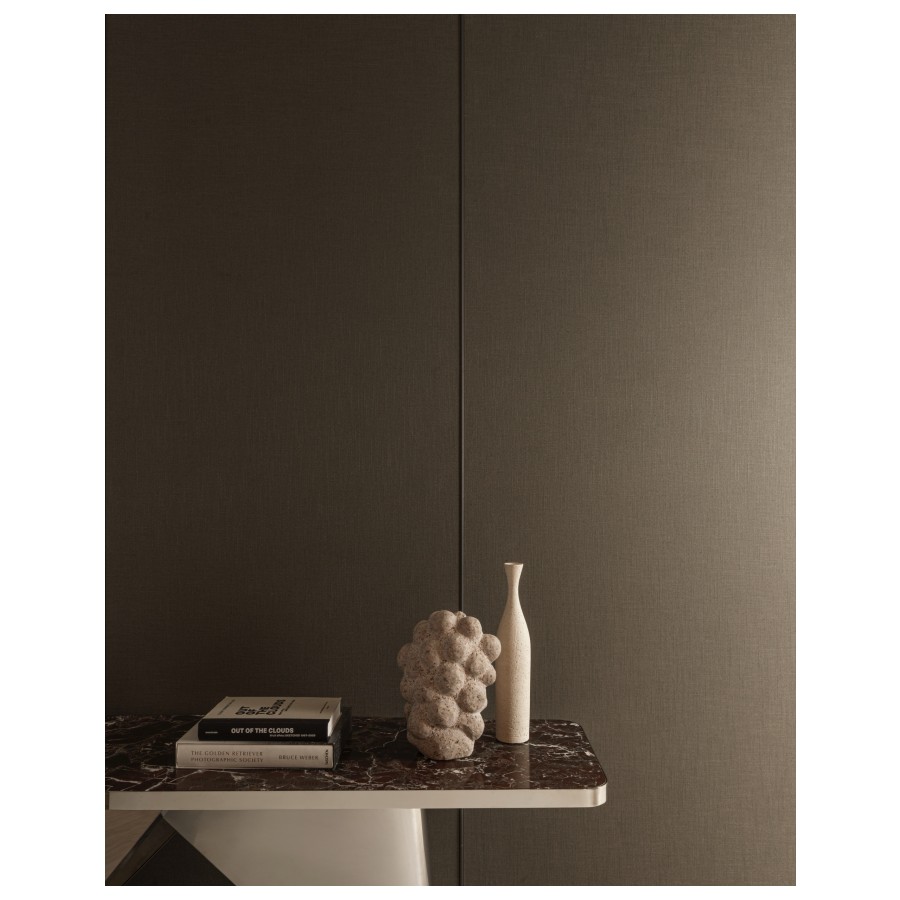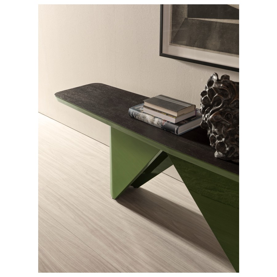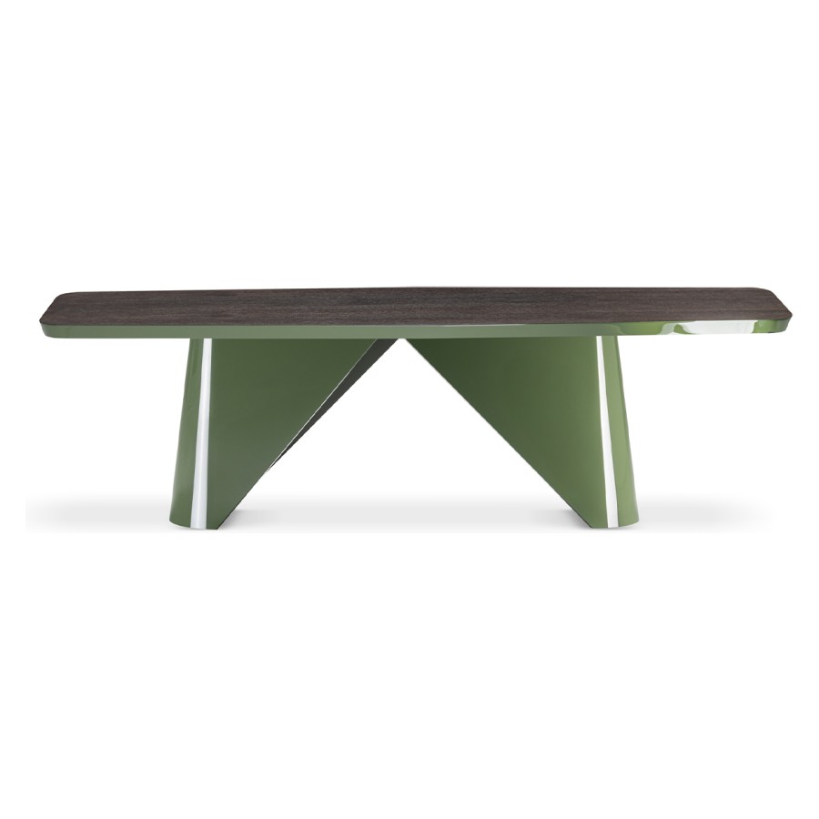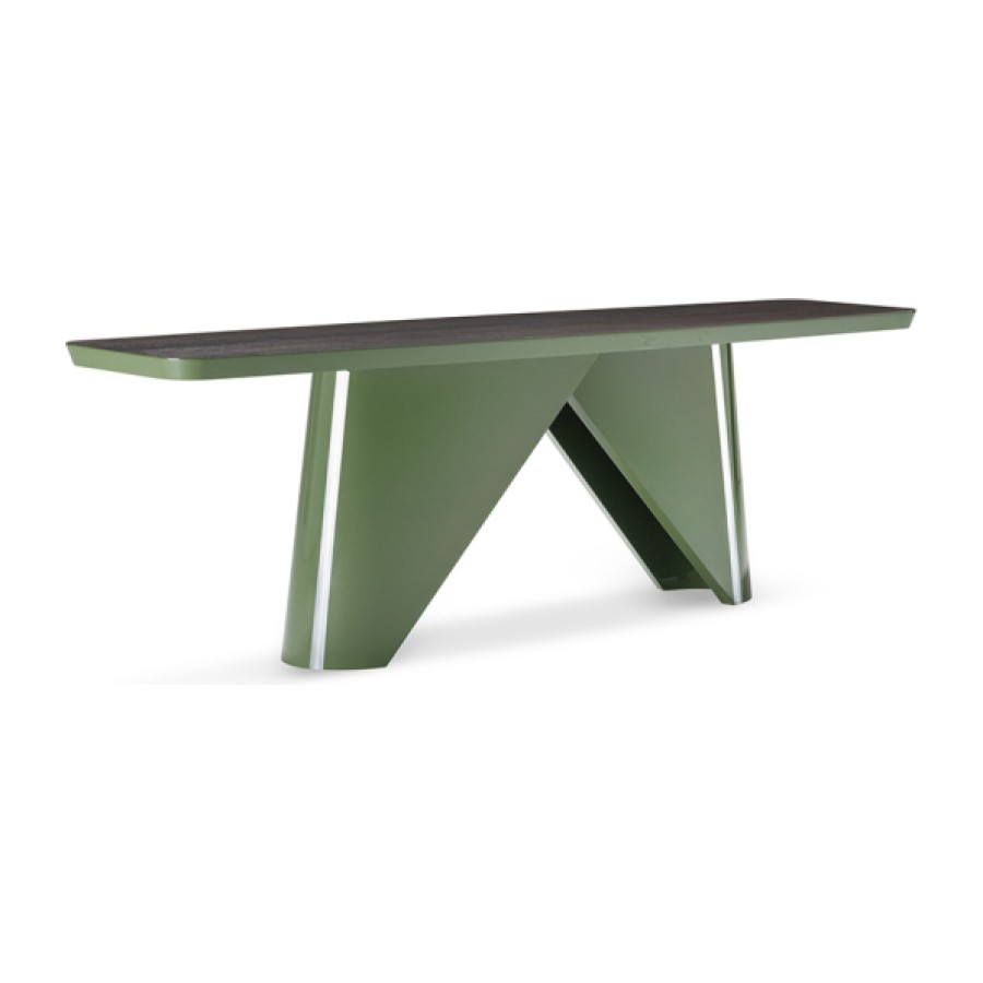 The consistency of the edge finish, echoed in the base’s glossy lacquer or polished steel, ensures a strong visual continuity throughout the piece. Whether placed against a wall or in the center of a room, Pénélope makes a striking statement, embodying sophistication and artistic integrity.