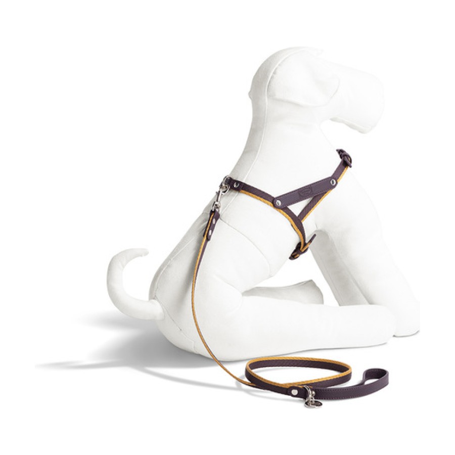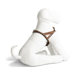 The harness, with adjustable chest and girth straps, is available in different sizes, made of tear-resistant reinforced webbing and Pelle Frau® leather. The metal parts are made of galvanized brass, in polished nickel.