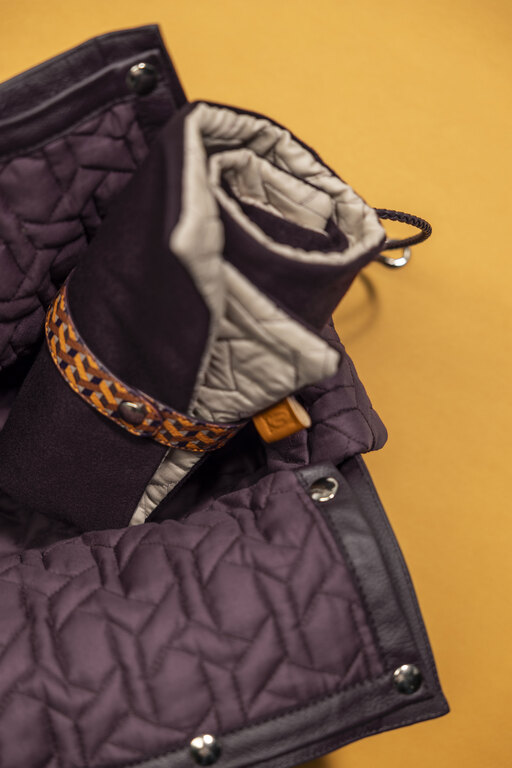 The travel plaid is a versatile accessory designed to provide comfort and warmth to your small pet. It is made of winter wool and cashmere and has a quilted, waterproof acrylic fabric side. Lightweight and easily foldable, it can be stowed in your bag thanks to a convenient Pelle Frau® Motif Weavers leather closure strap matching the color of the plaid. It can be hand-washed at 30°C or dry-cleaned, and can be ironed at low temperatures.