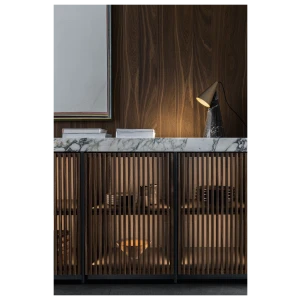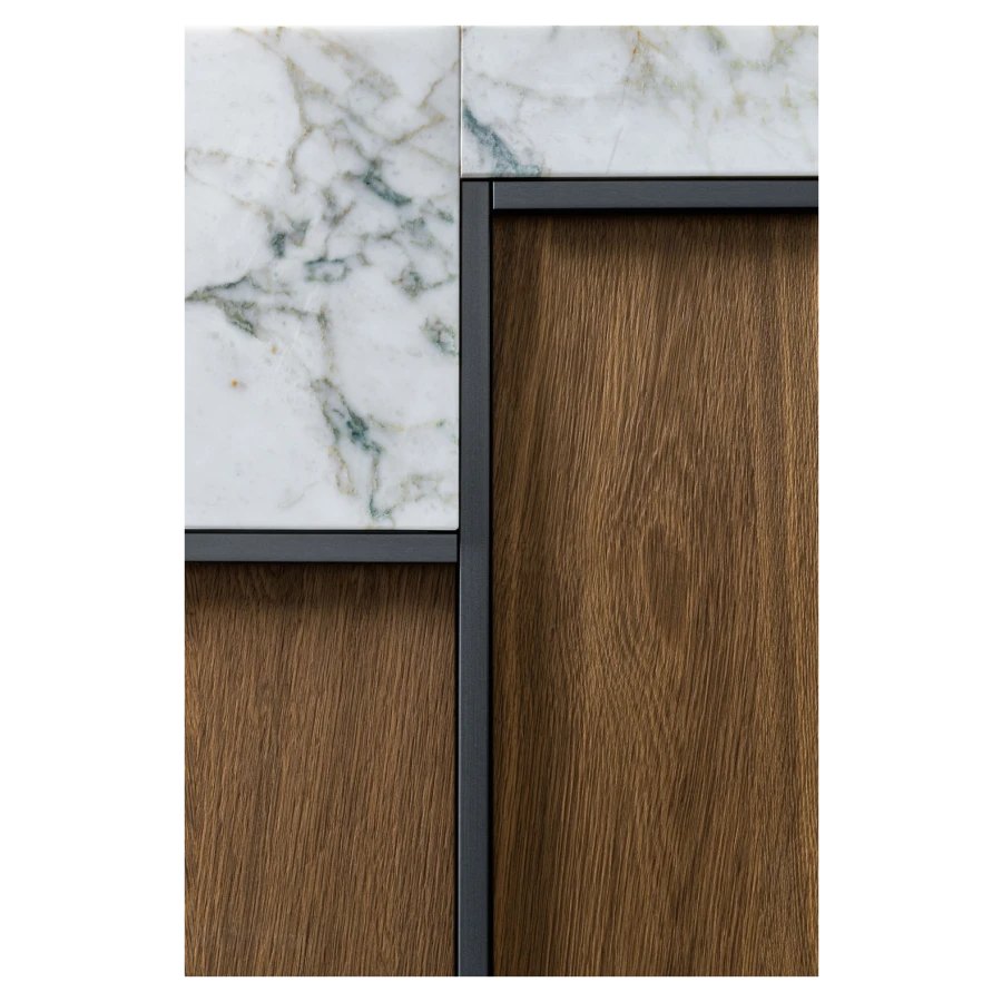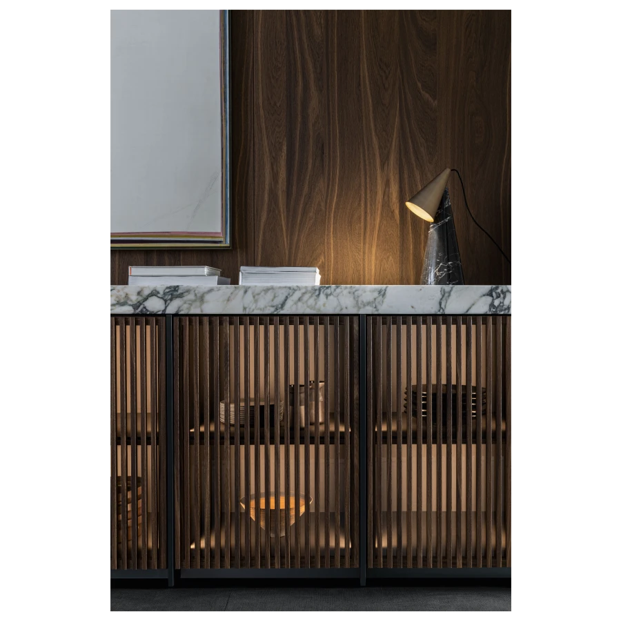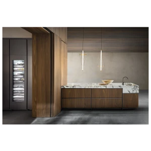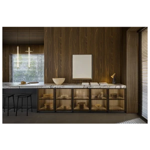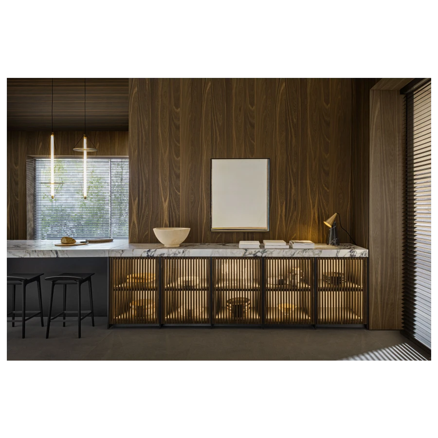 With the aim of satisfying the most demanding and sophisticated user, Ratio is enriched with new floor bases, equipped with slatted doors and internal lighting, which integrate the handles with profiles of the same thickness, designing a decorative frame that gives rhythm to its structure.