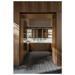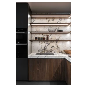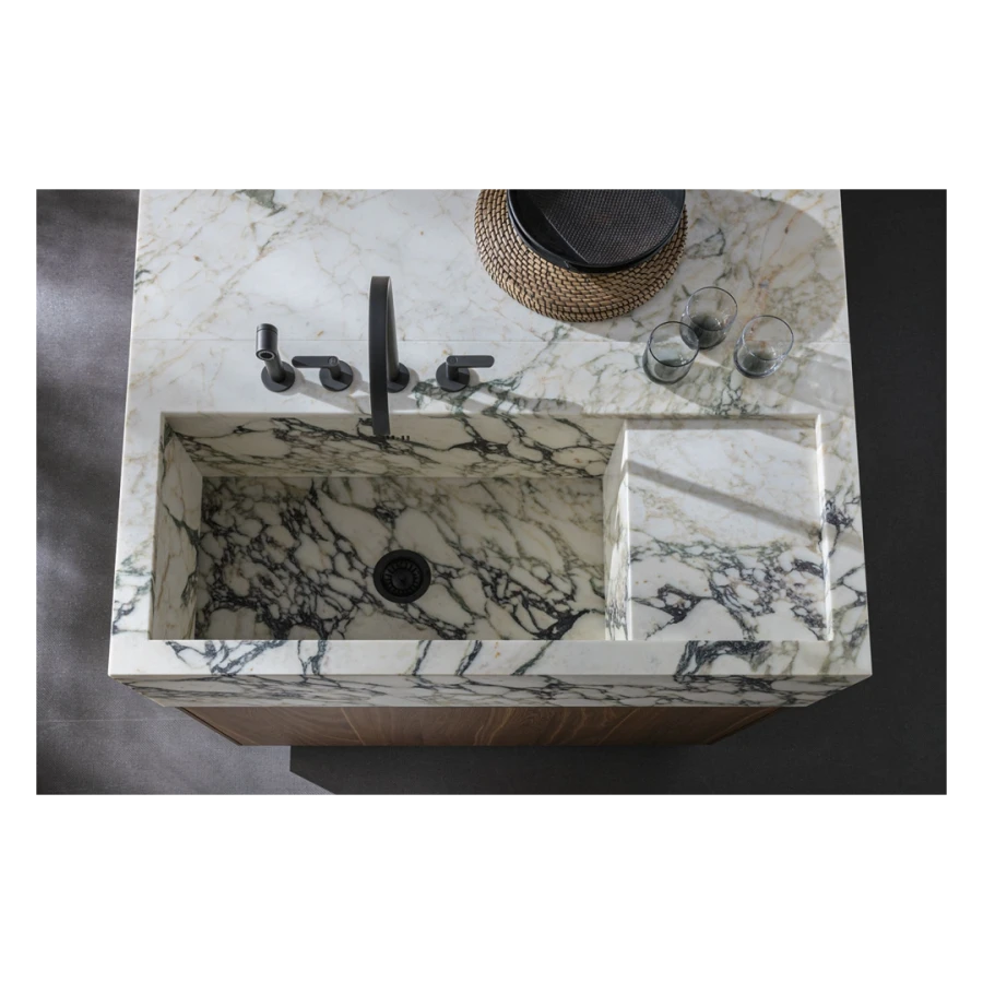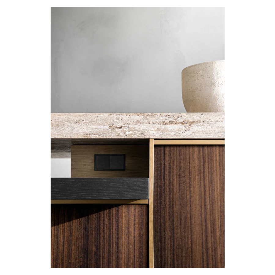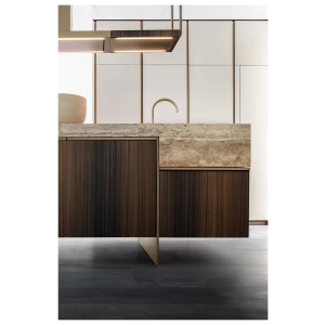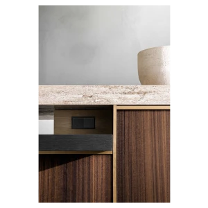 The research on materials is always oriented towards warmth and Mediterranean characters, with alternation between refined essences such as thermo oak, and sophisticated natural stones such as the new Breccia Capraia.