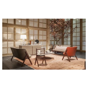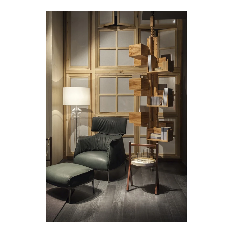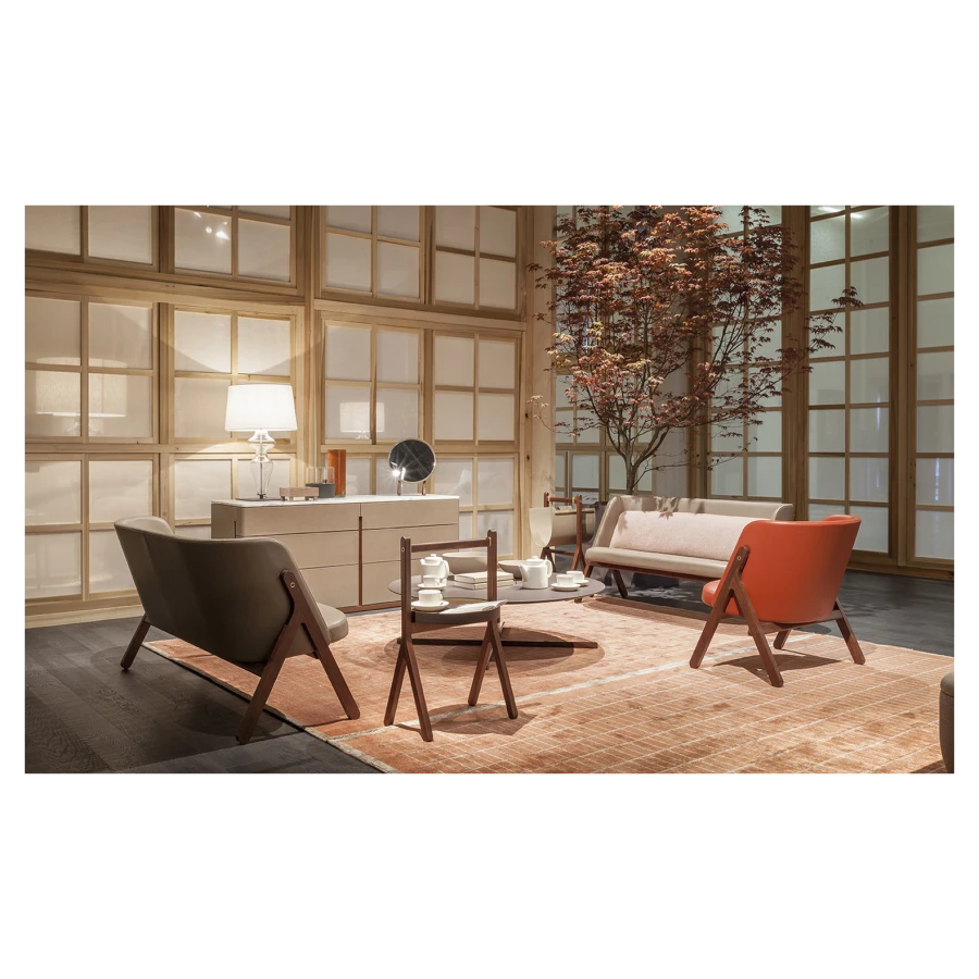 Ren is a symbolic reference to the centrality of human beings in interior design. Armchair, sofa and a complete collection of furniture accessories inspired by the Chinese ideogram “ren”, which means “person”. The longer stroke sticks out slightly and is supported by the shorter stroke: a symbol, pure and simple, that transforms into an original design element characterising the profile of every object. When designing the elements in this series, Neri & Hu sought to maximise their versatility and adaptability to different spaces, giving people the chance to create welcoming homes with the utmost freedom. In fact, they can be used in the entrance hall, living room, bedroom, bathroom and study, but are also perfect for non-domestic spaces such as meeting rooms or waiting areas. All of the objects are made of wood, brass and saddle-leather: fine materials that are showcased thanks to the simplicity of the design.