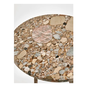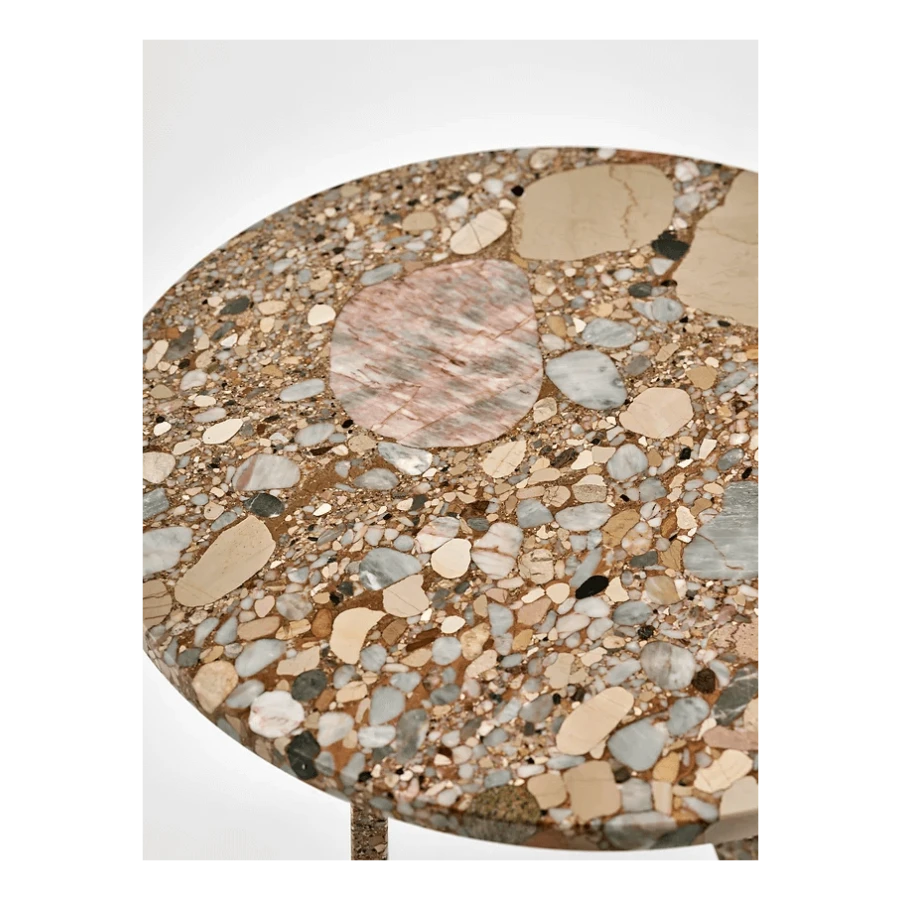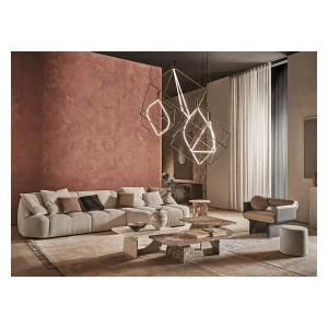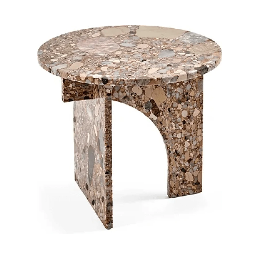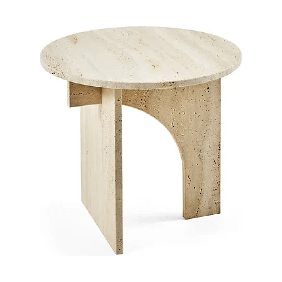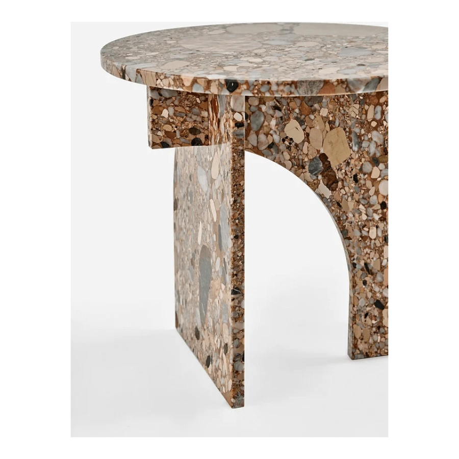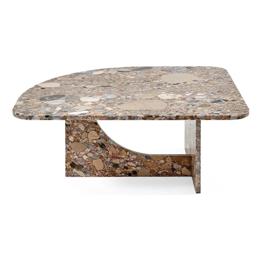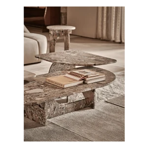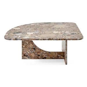 Coffee table in stone. Available in “Ceppo dei Volpi” or “Ceppo Antico”. On request also available in natural brushed Travertino Romano (not treated with resin). Right or left version (A and C) to be specified when ordering.