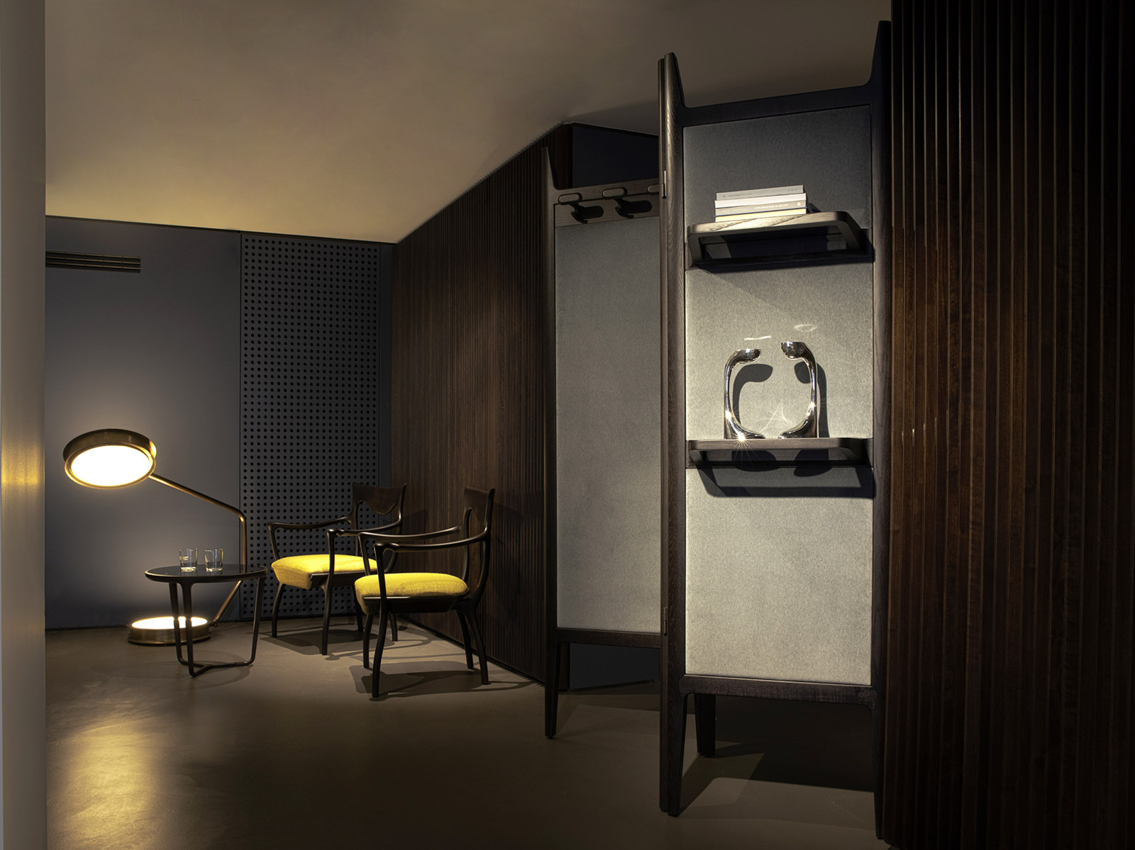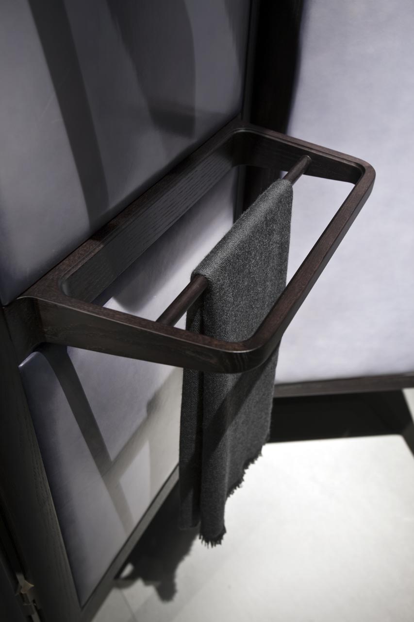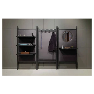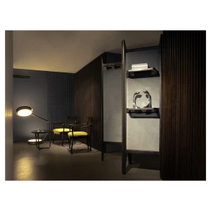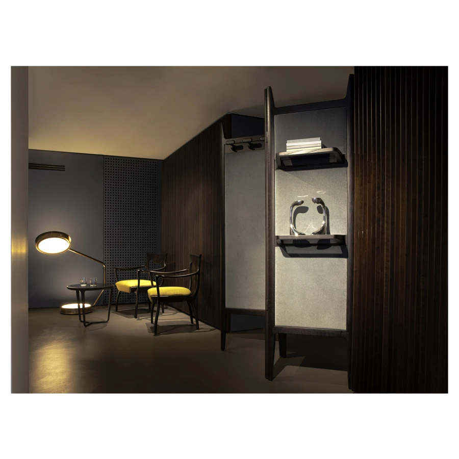 The modules are available in two heights and two widths. They can be accessorised with clothes hangers, shelves and mirrors to add functionality and flexibility. The possibility of organising the panels into linear structures but also into complex and articulated geometries makes Set a genuinely multi-faceted product. At home it can be used to separate two areas, for example the dining room from the living room. Alternatively, it can be used to creatively cordon off the entrance, and with two or three panels it is possible to create little boudoirs in the bedroom. Large spaces have different requirements. Long linear panels can be used to indicate paths and more structured compositions are also possible, perhaps creating sequences of exclusive spaces for private gatherings or business meetings. One of the key features of the project is the use of fabric. The panels are padded with thin slabs of foam but it is through the choice of fabric that these accessories can be personalised and given an exclusive touch. The colour and texture of the materials enhance the expressiveness and communicative power of the product and the large surfaces of the panels lend themselves to high-impact colour solutions.